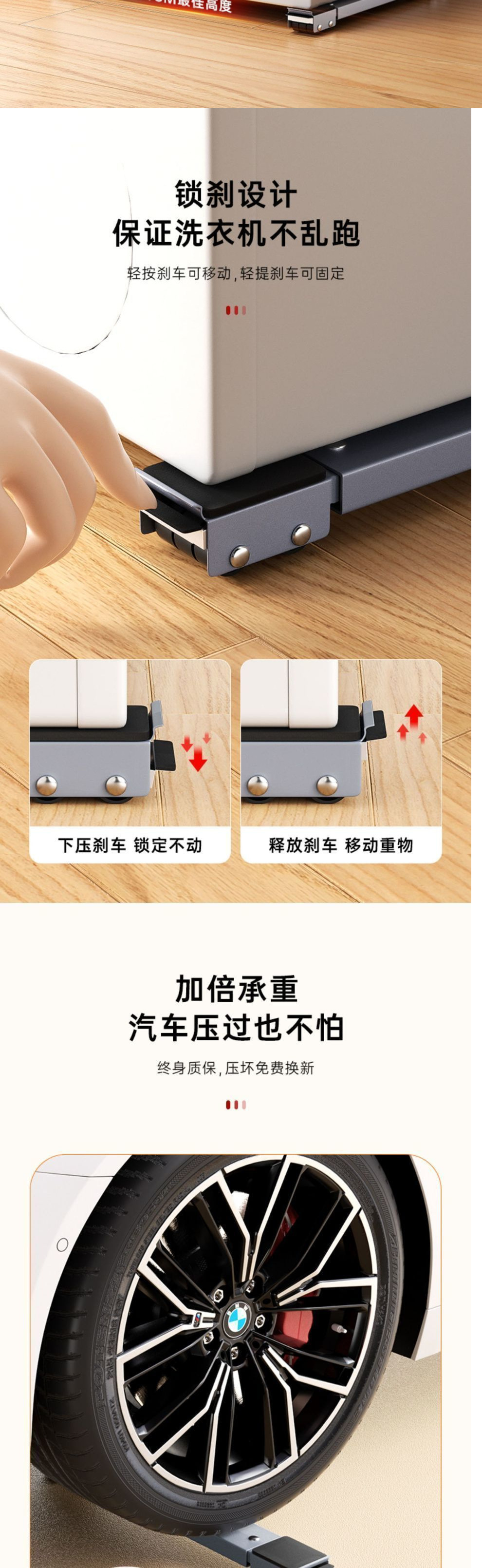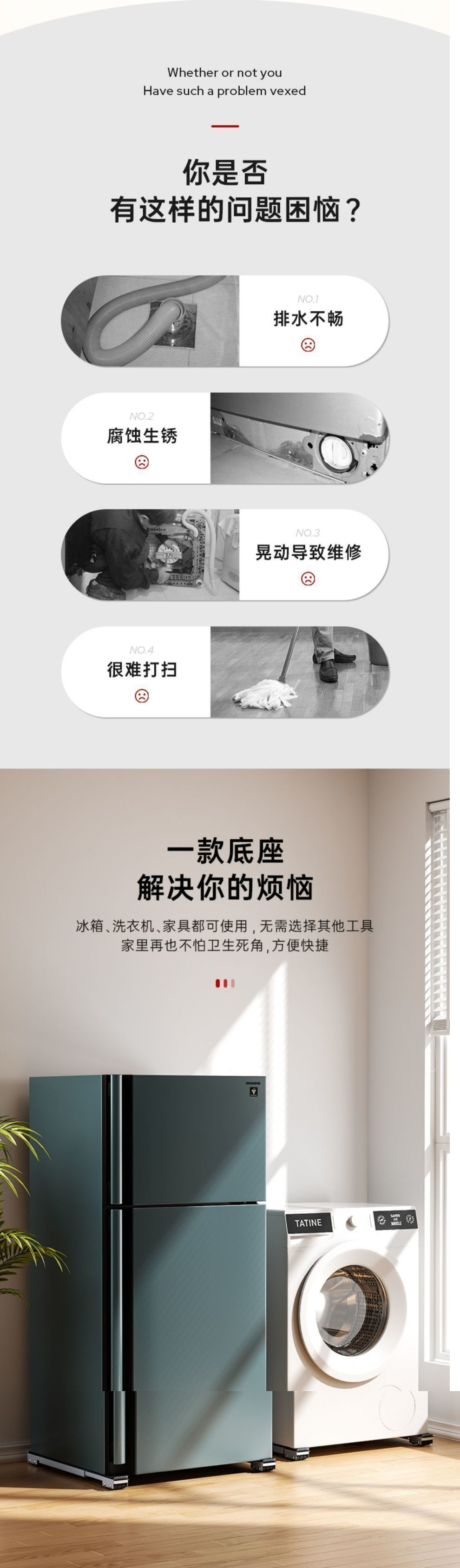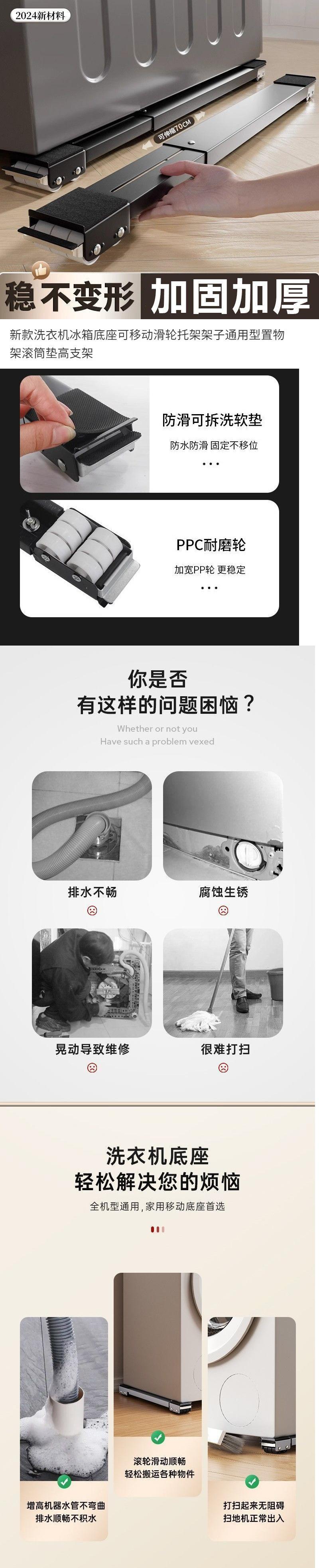 새로운 냉장고 및 세탁기 베이스 이동식 휠 브래킷 선반 범용 스토리지 랙 롤러 패드 높이 브래킷