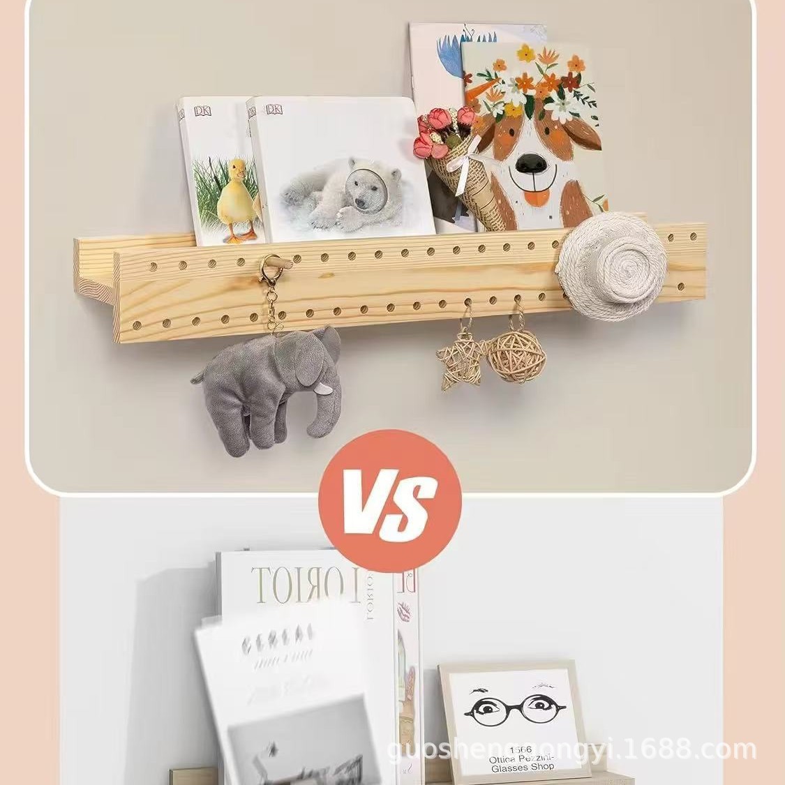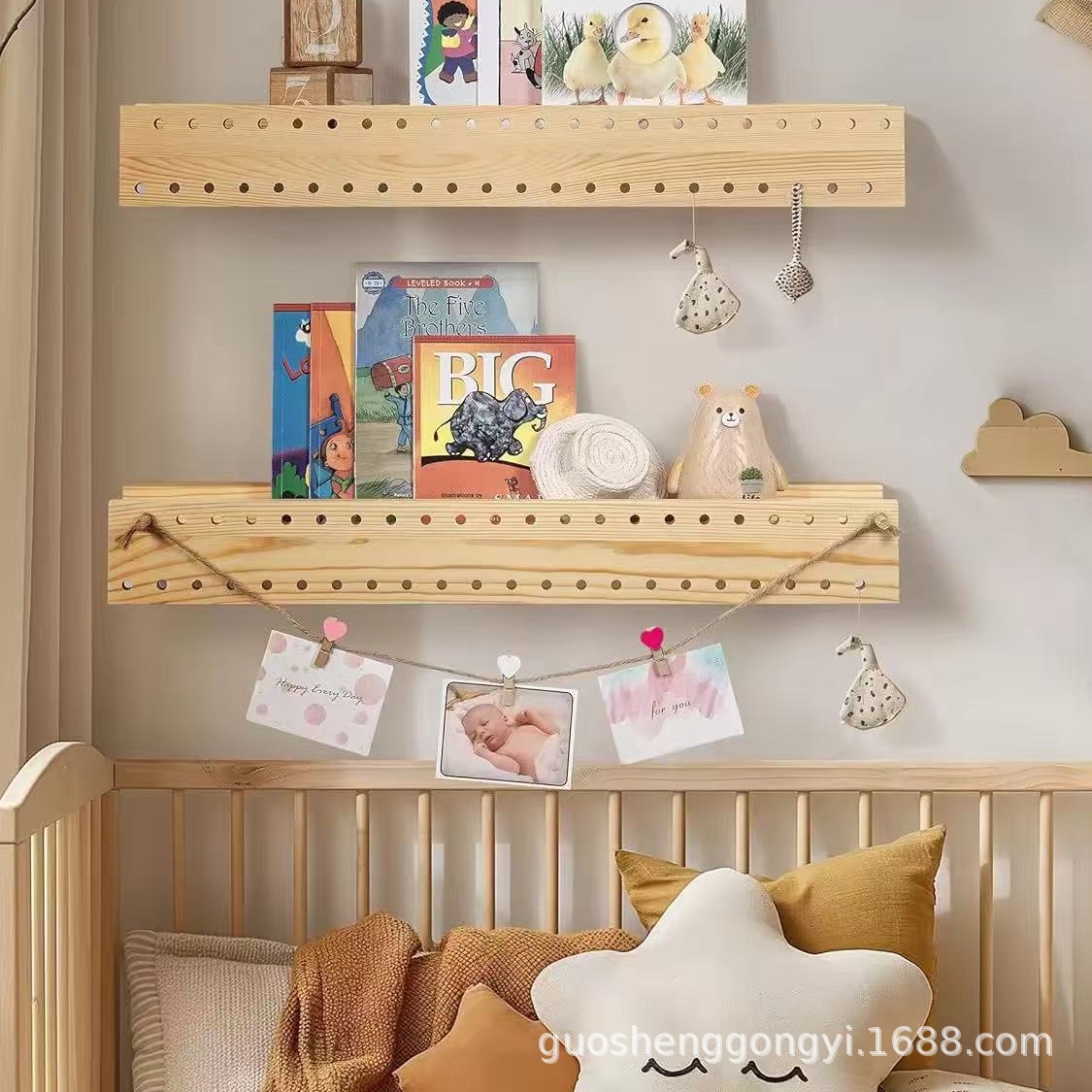 단단한 나무 벽걸이 형 장식 플로팅 파티션 나무 벽 그림책 선반 유치원 책장 어린이 방 장난감 선반