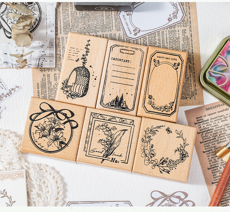 Hanano Time 시리즈 나무 복고풍 핸드북 스탬프 신선한 문학 핸드북 DIY 장식 재료 스탬프 6 스타일