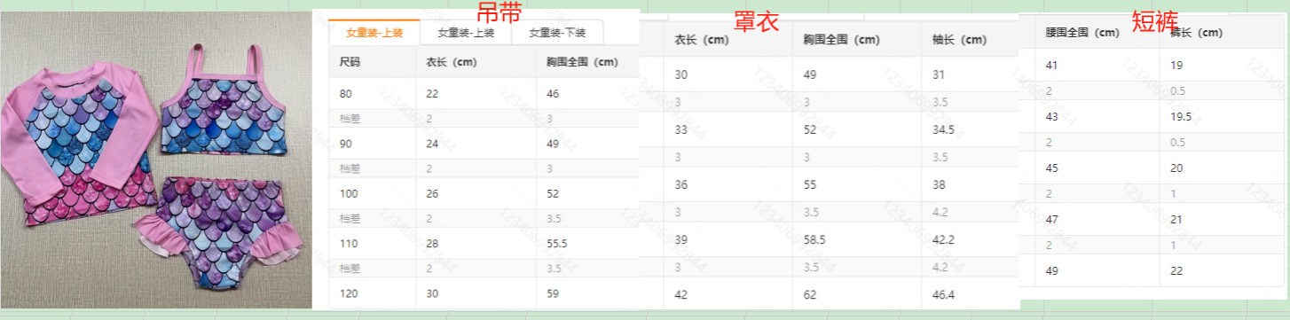 유럽과 미국 소녀의 귀여운 3피스 서스펜더 수영복 물고기 비늘 프린트 수영복 어린이 여름 인어 스플릿 수영복스토어 가기