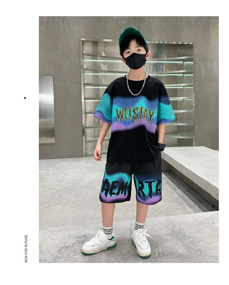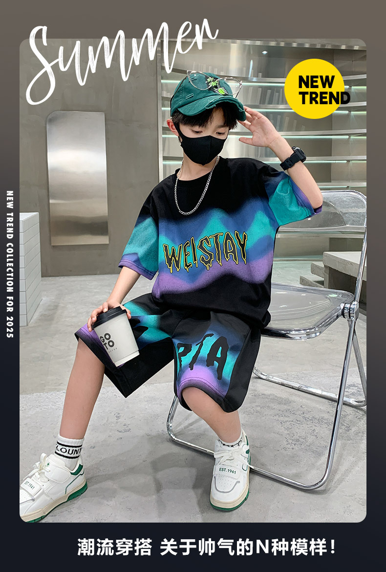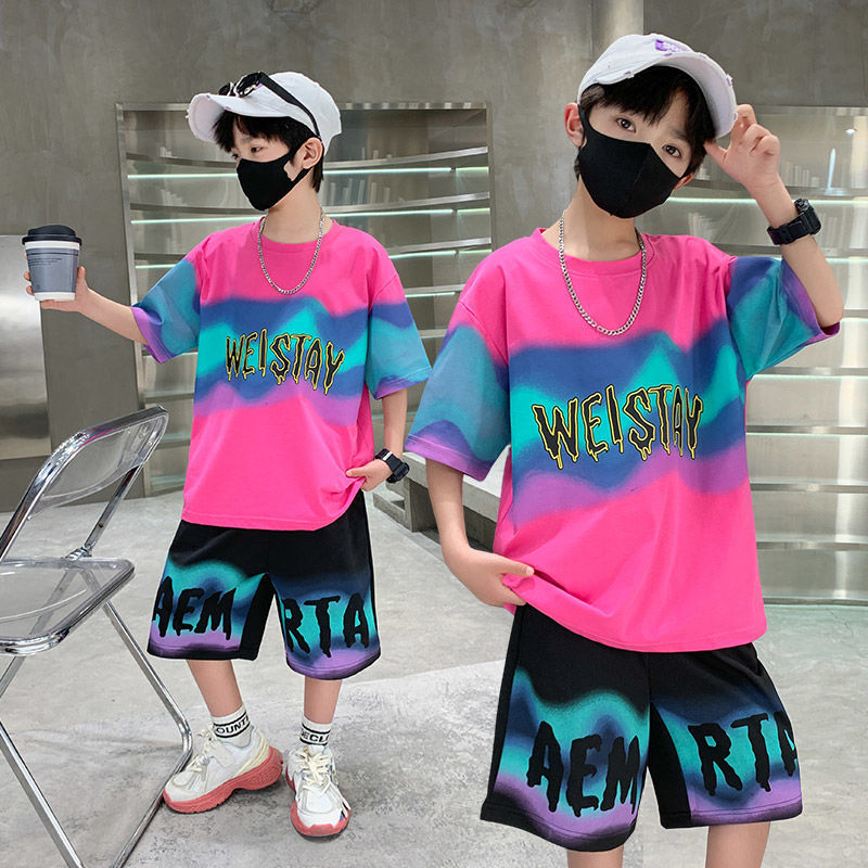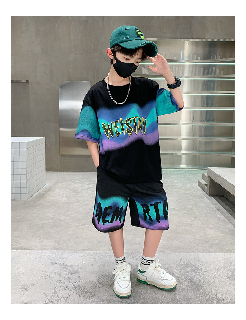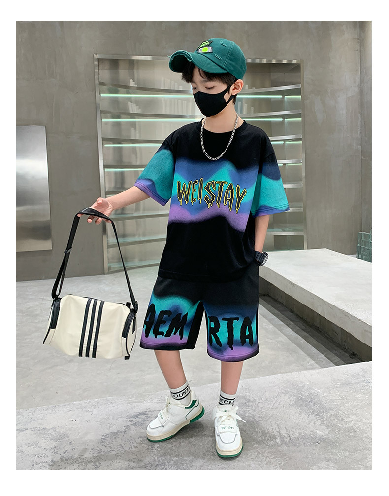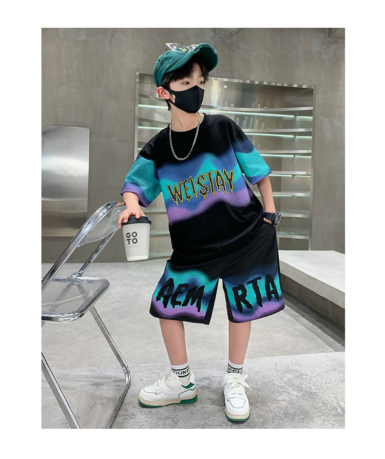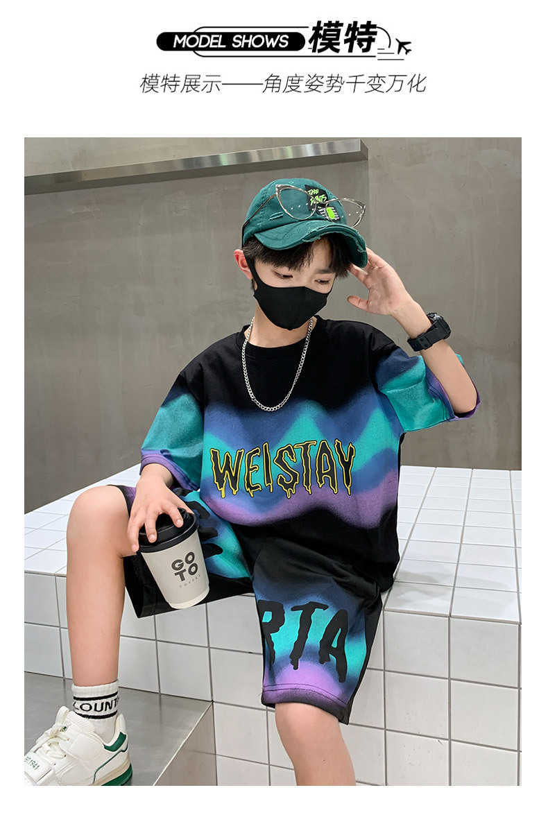 남아 여름 정장, 새로운 스타일, 반팔, 패셔너블, 중대형 아동 여름 남아, 멋지고 패셔너블한 투피스 세트, 스트리트웨어스토어 가기
