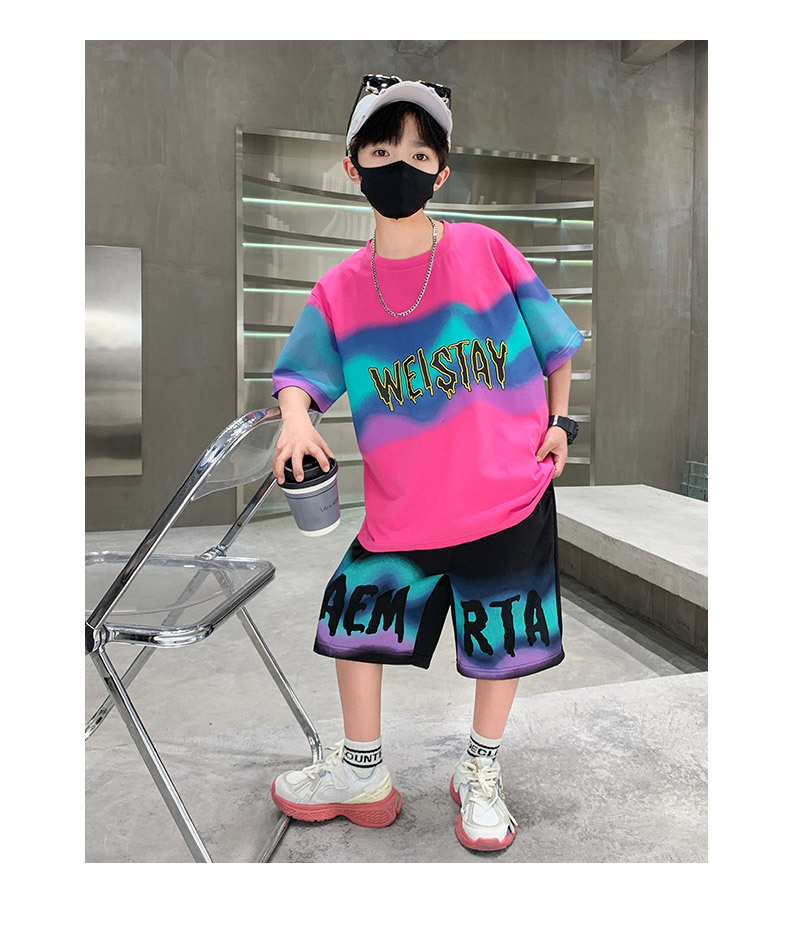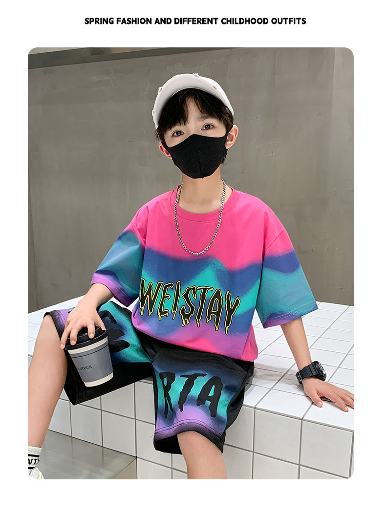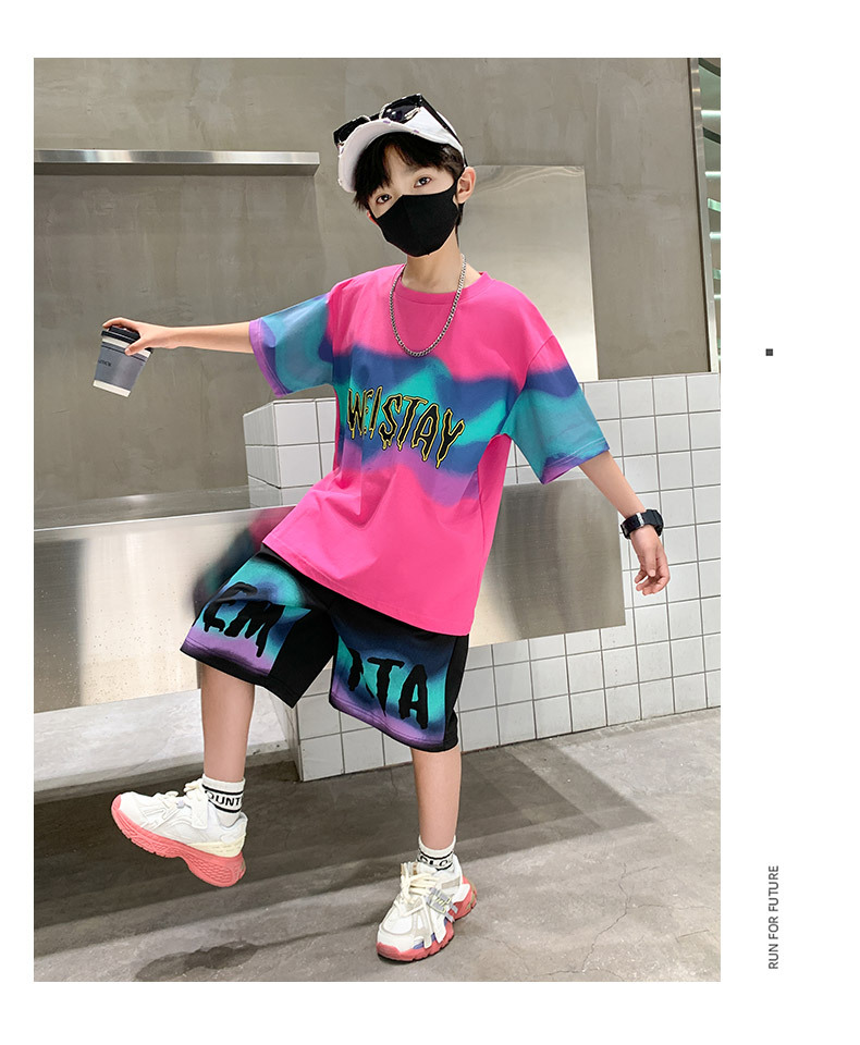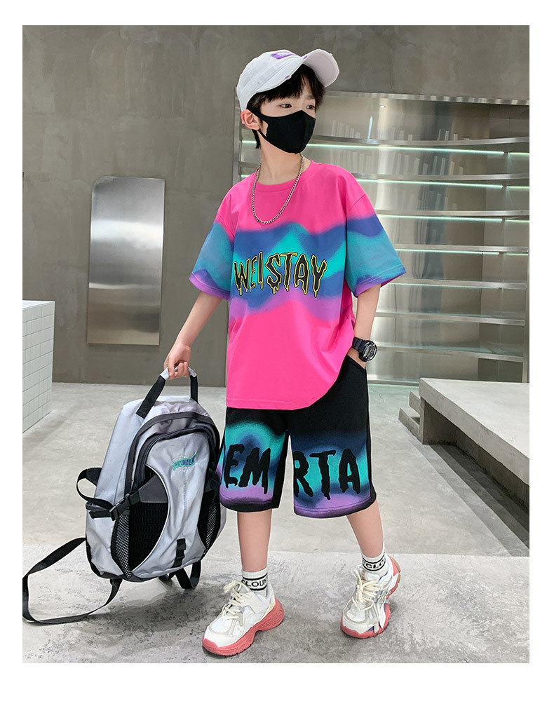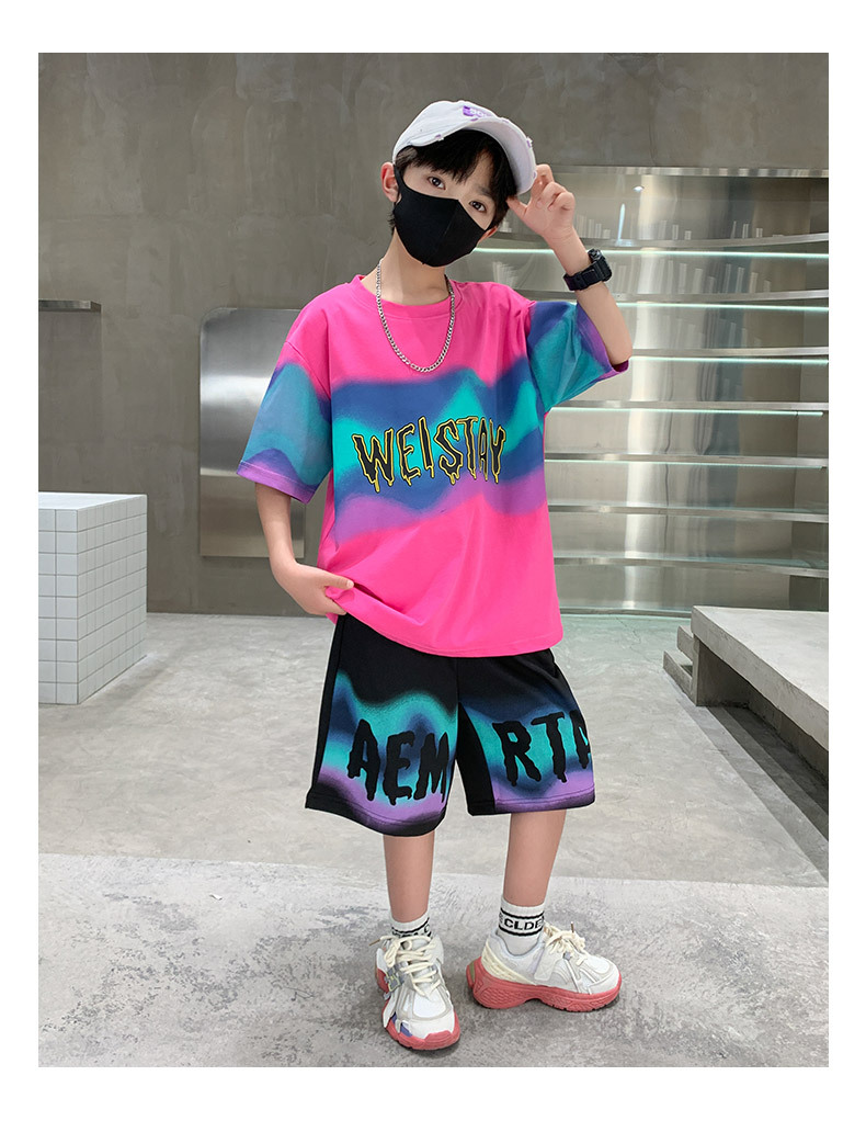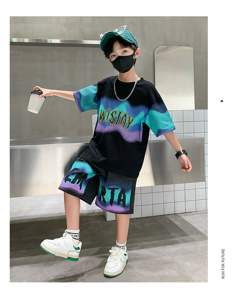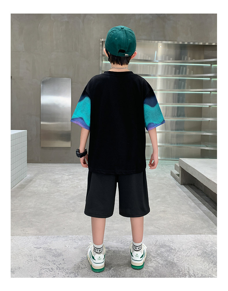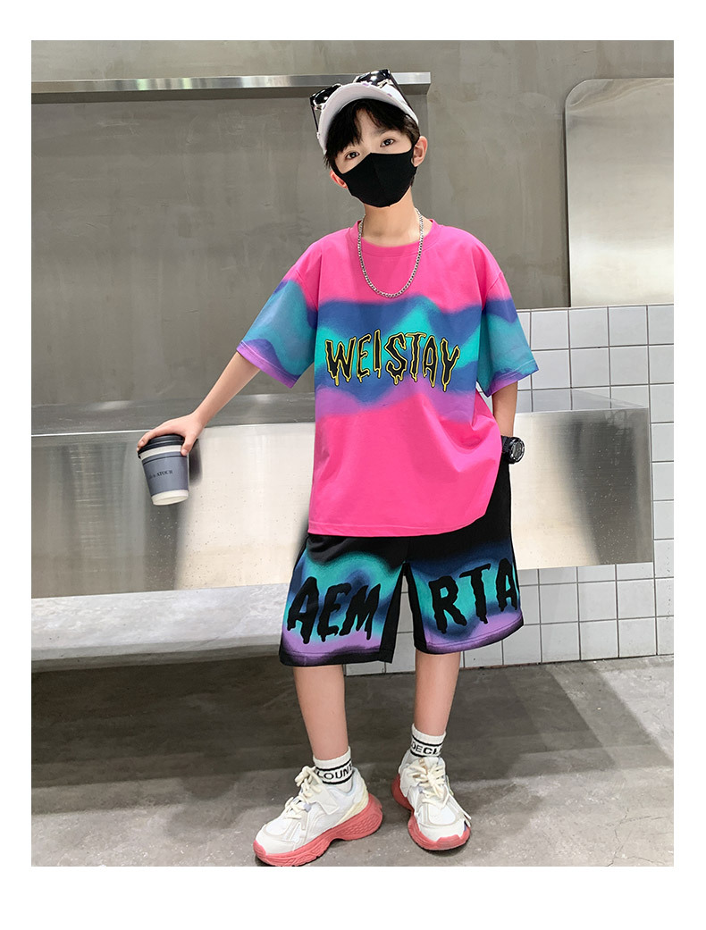 남아 여름 정장, 새로운 스타일, 반팔, 패셔너블, 중대형 아동 여름 남아, 멋지고 패셔너블한 투피스 세트, 스트리트웨어스토어 가기