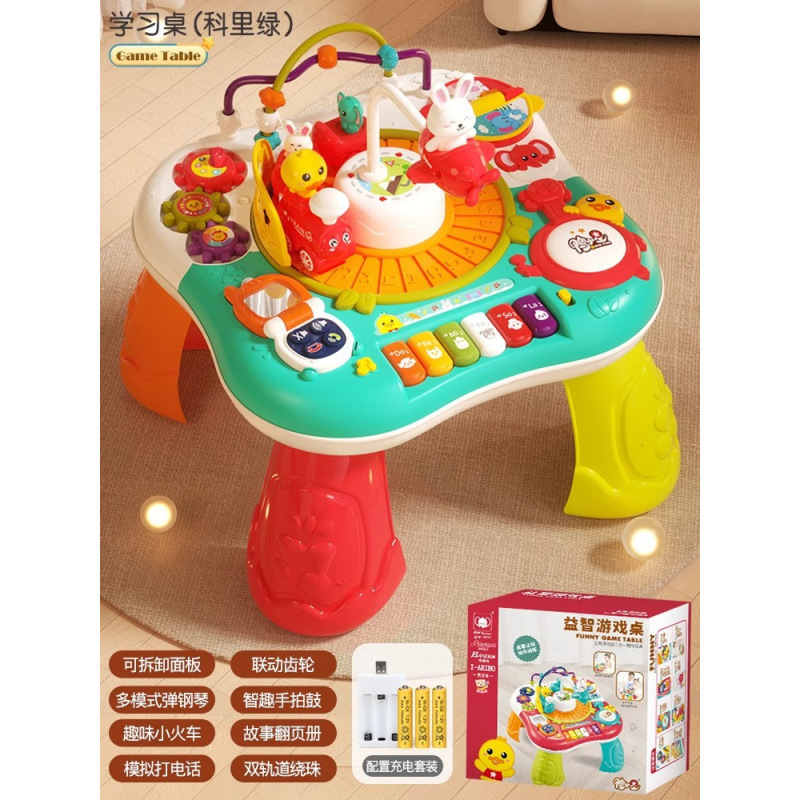 • 업그레이드된 학습 테이블 + 빌딩 블록 보드 세트-[코리 그린]-충전식 버전
