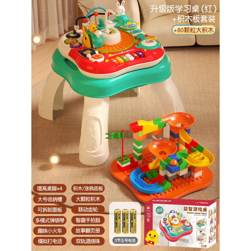 • 업그레이드된 학습 테이블 + 빌딩 블록 보드 세트-[펄 레드]-배터리 버전