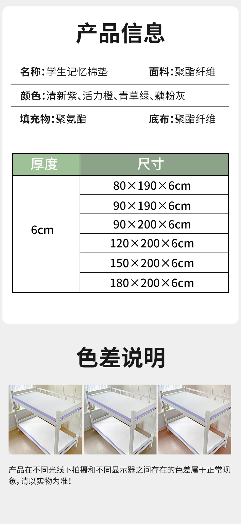 • 80×190×6cm