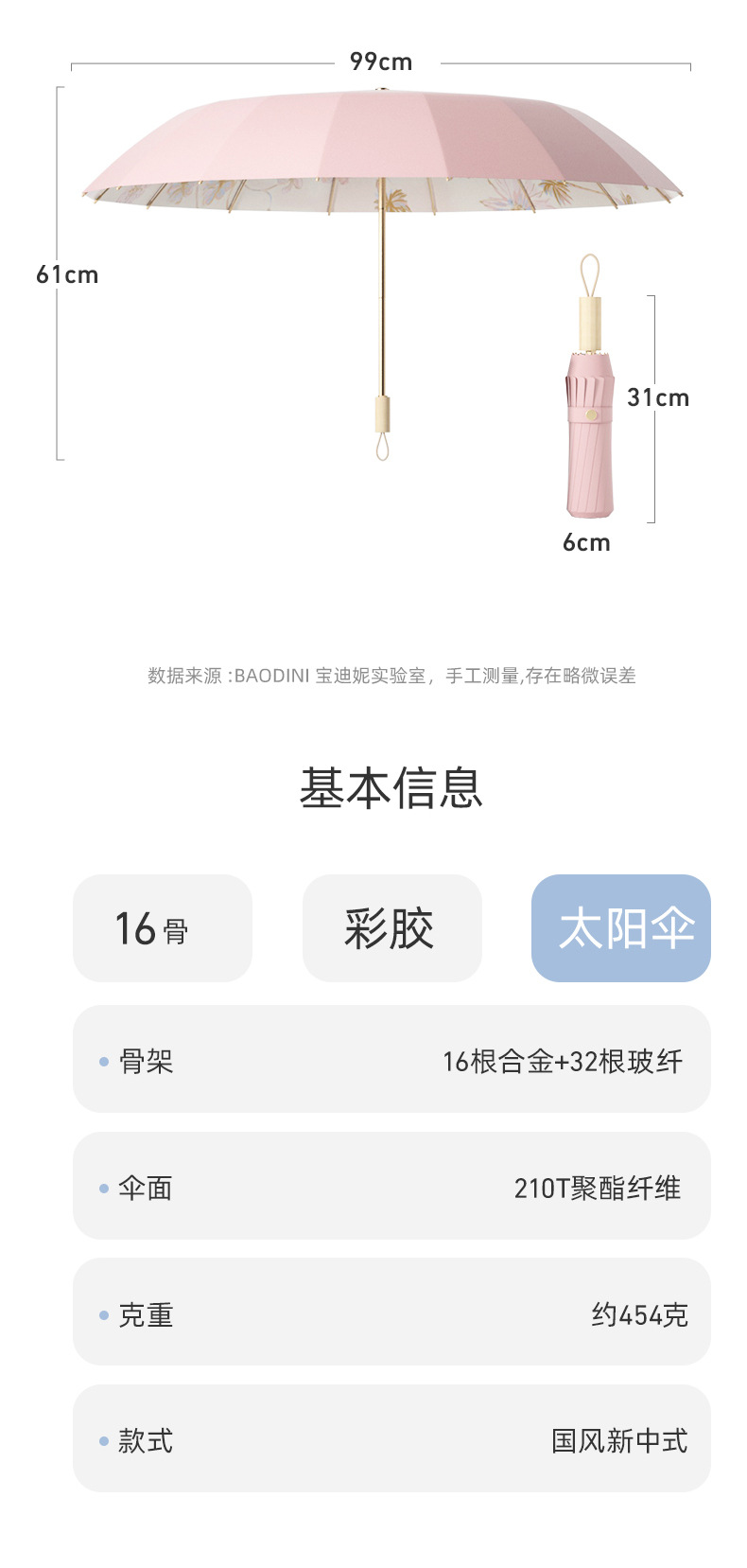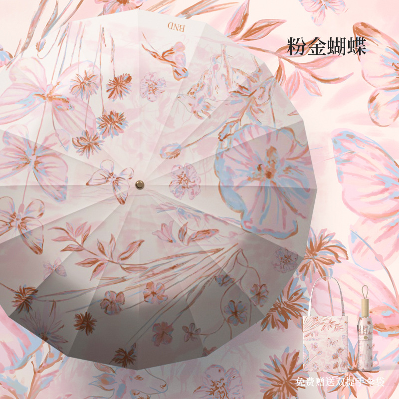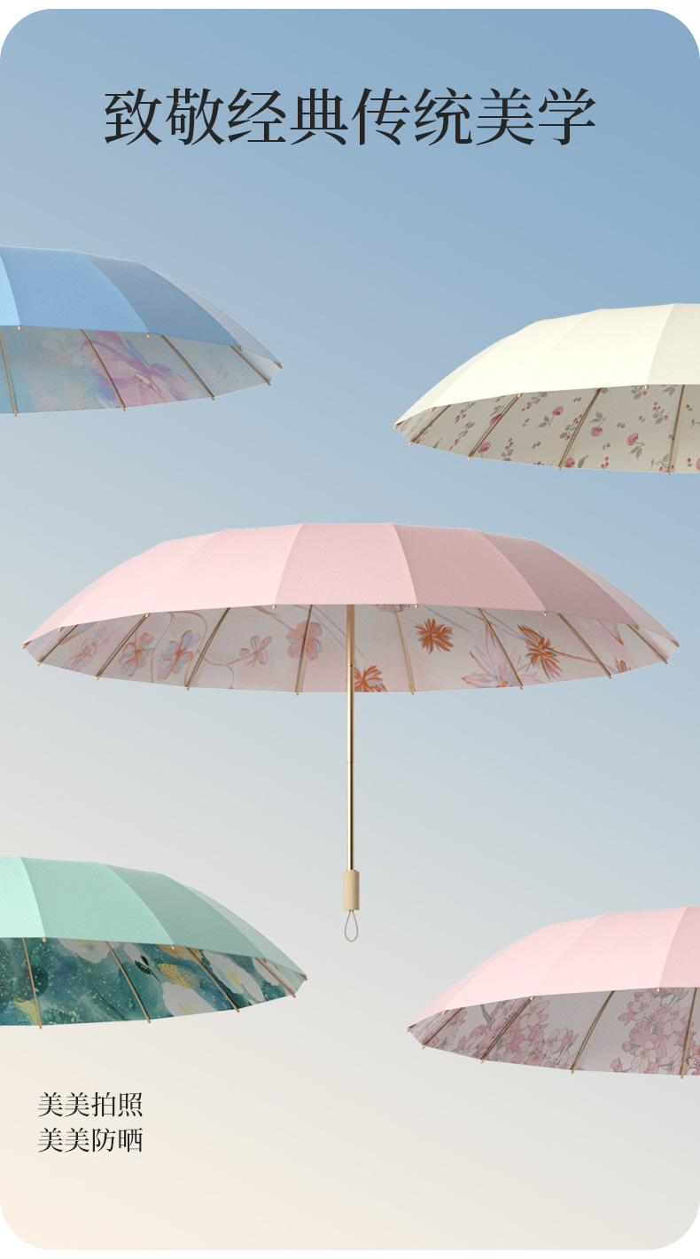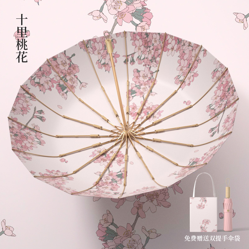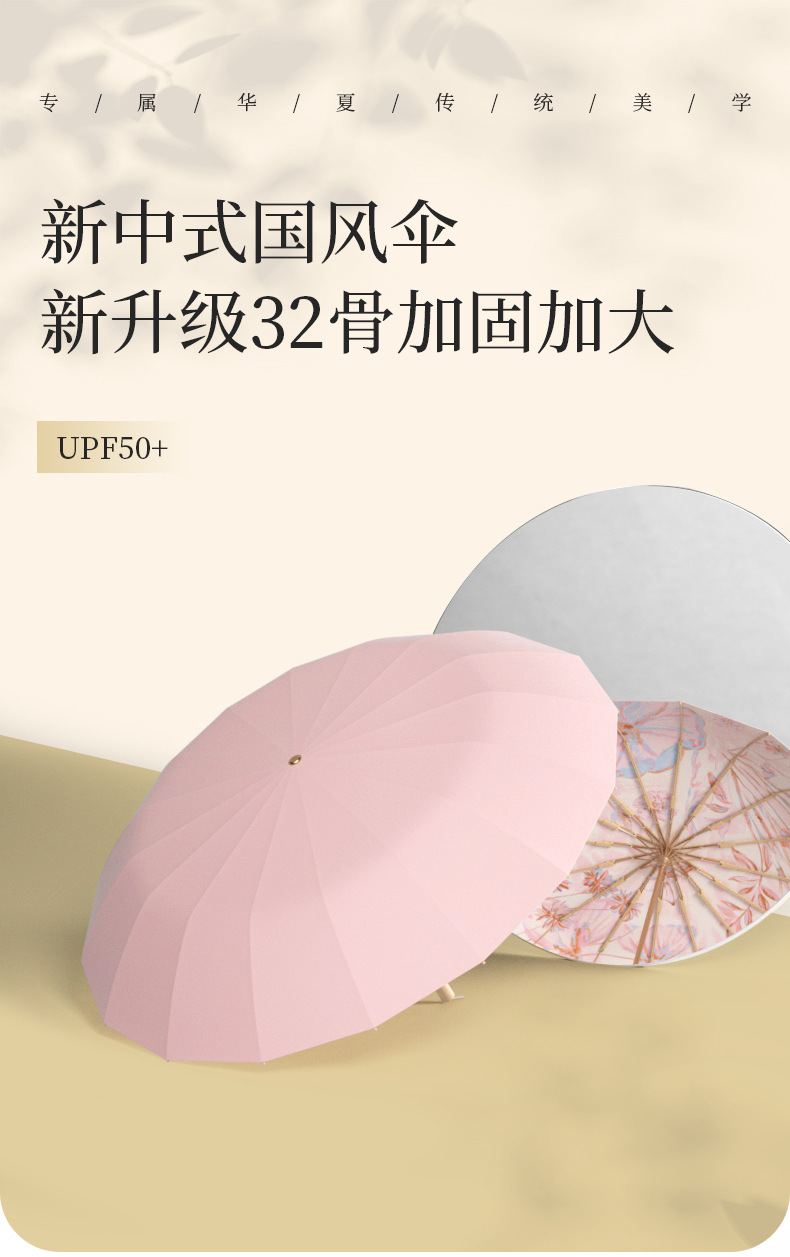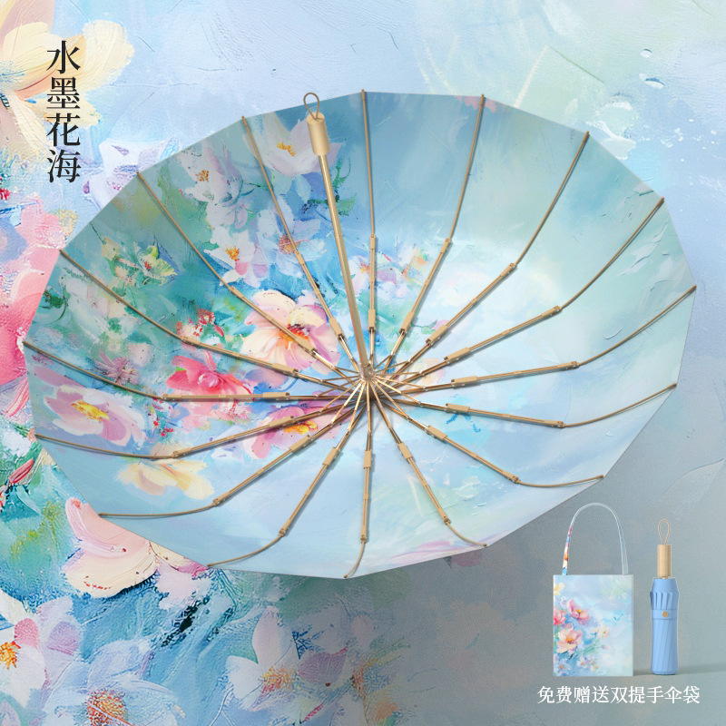 여성용 32본 접이식 우산, 비가 오나 눈이 오나, 자외선 차단 및 자외선 차단, 확대 및 강화된 두꺼운 파라솔