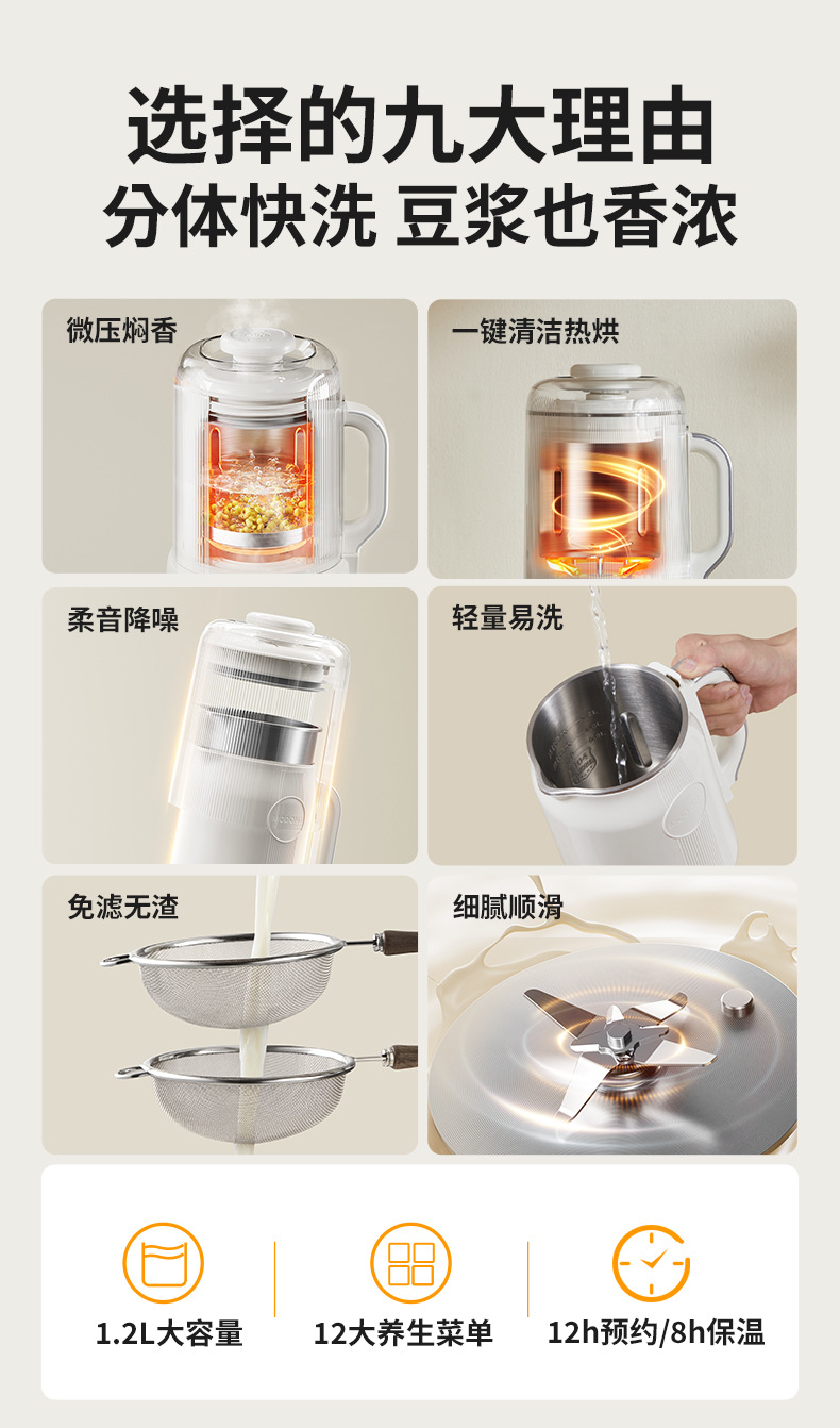 벽파괴기 가정용 완전 자동 2025 새로운 소프트 사운드 다기능 무조리, 필터링 및 잔류물 없는 소형 두유 기계