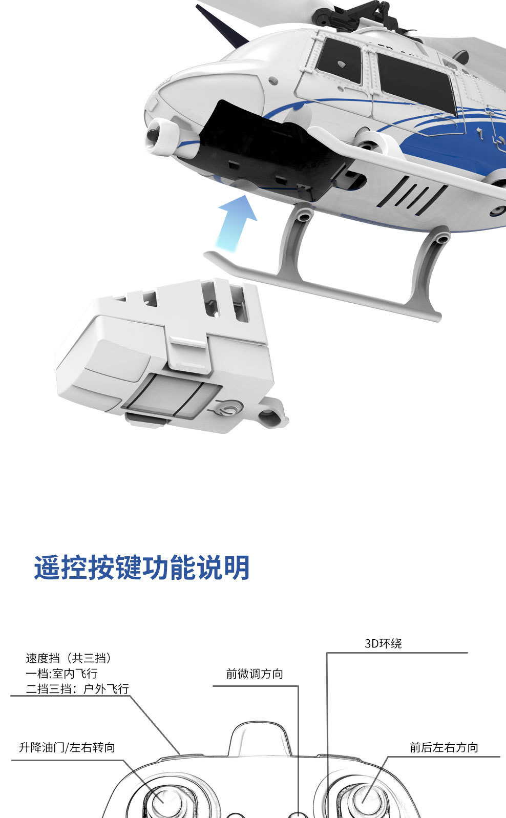 • 파란색 헬리콥터 [강화 모터 - 양손 조종 - 풀세트 액세서리 - 영문 포장]
