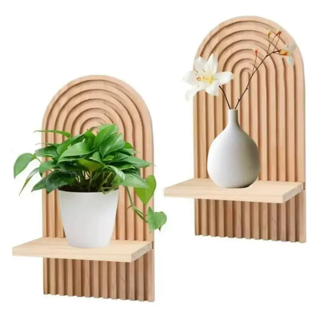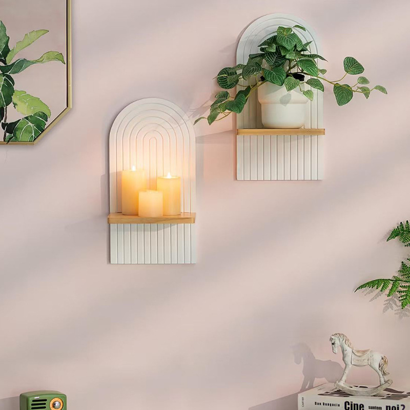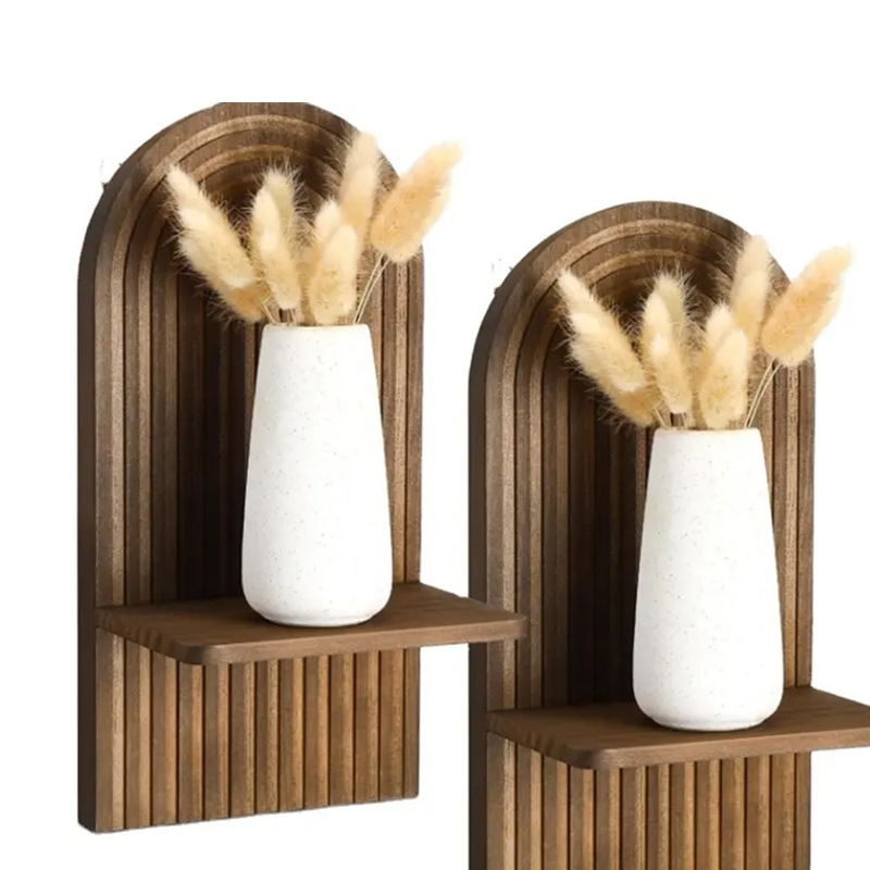 가정용 거실을 위한 창의적인 나무 벽걸이형 선반 아치형 아로마테라피 꽃병 디스플레이 랙 녹색 식물 디스플레이 랙