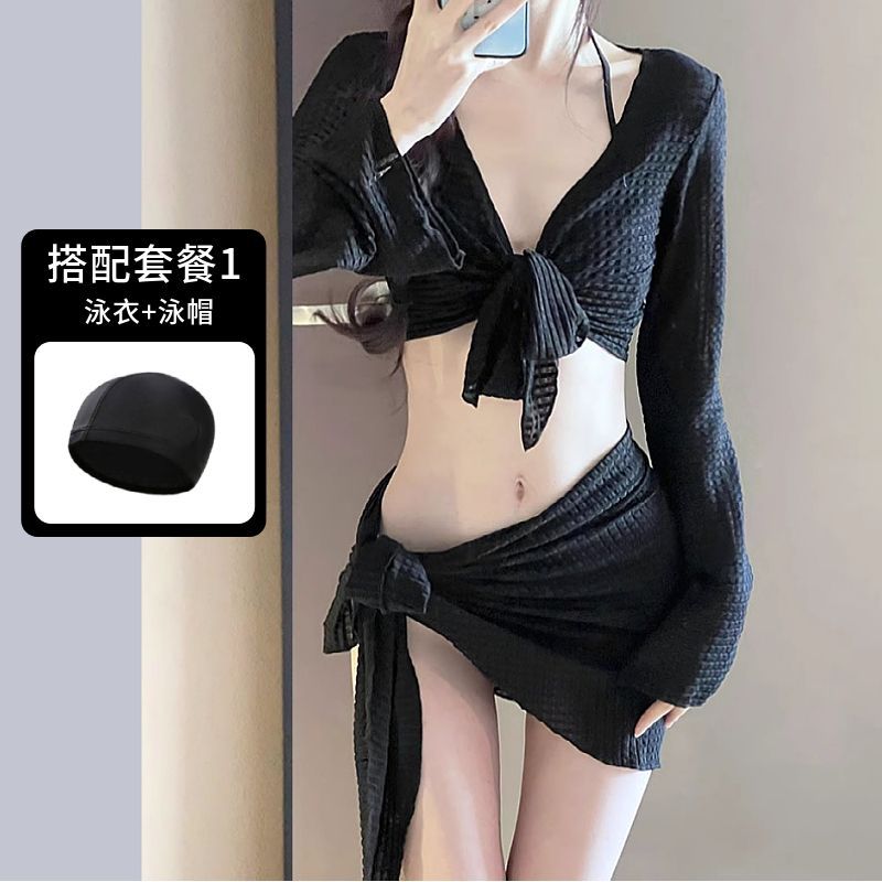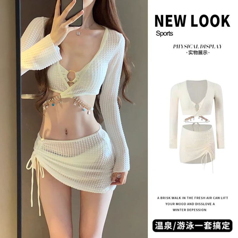 수영복 여성 비키니 여성 4피스 스플릿 2024 새로운 패션 중공 보수적 해변 온천 언더와이어