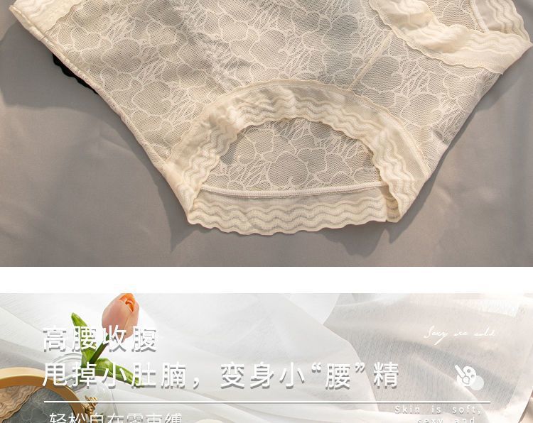 화려하고 다채로운 ~ 여성용 하이웨이스트 레이스 속옷, 배를 조절하고 가볍게 몸매를 잡아주는 면 가랑이 신축성 있는 쉐이핑 심리스 팬티