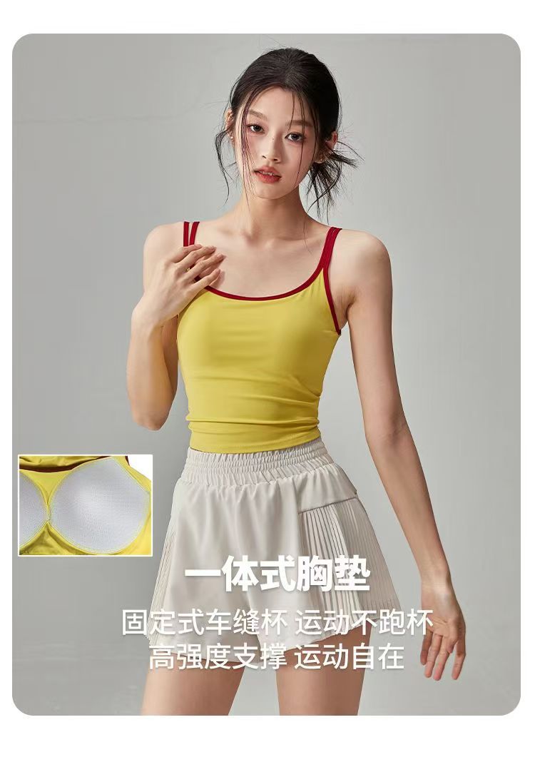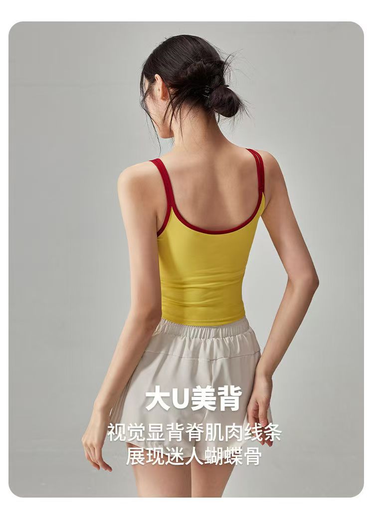 2025 여름 요가복 조끼, 가슴 패드가 있는 스포츠 브라, 슬리밍 민소매 필라테스 탑, 신상품스토어 가기