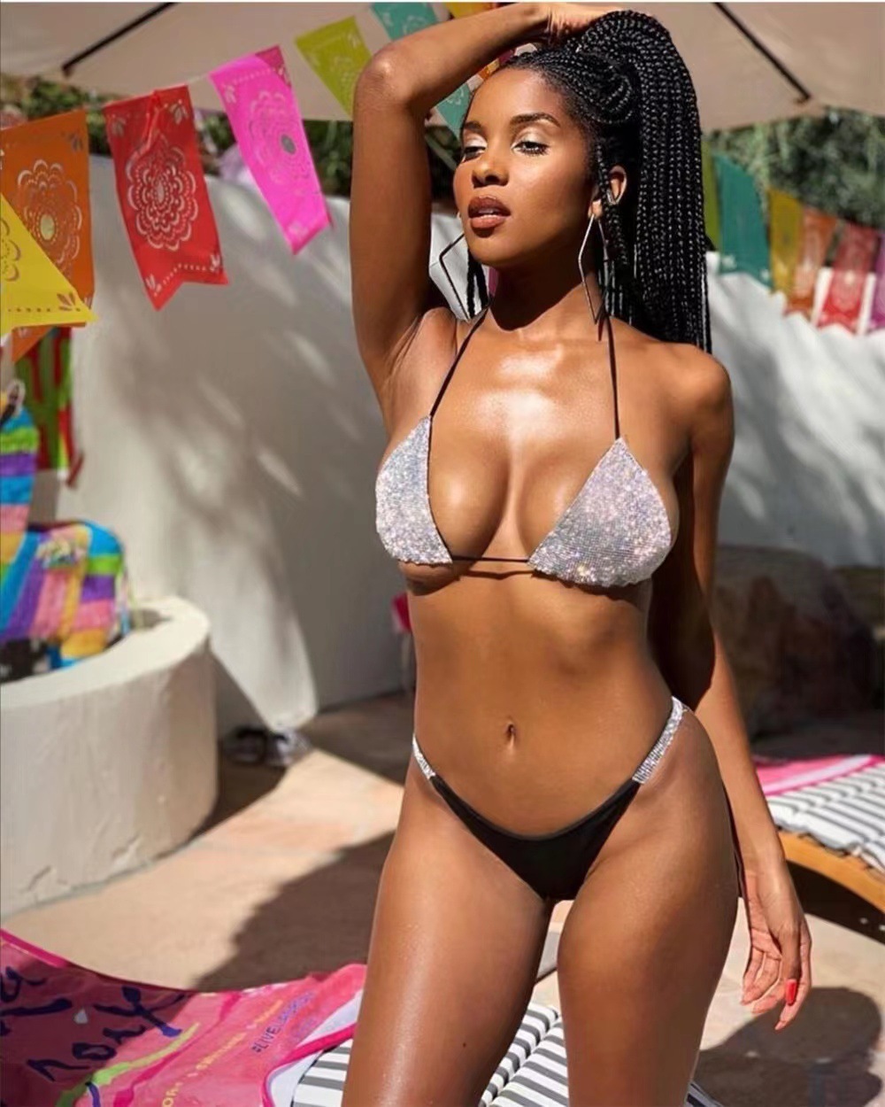 유럽풍 비키니 분리형 수영복 섹시한 로우 웨이스트 분리형 반짝이 수영복 여성 온천용 삼각형 수영복스토어 가기