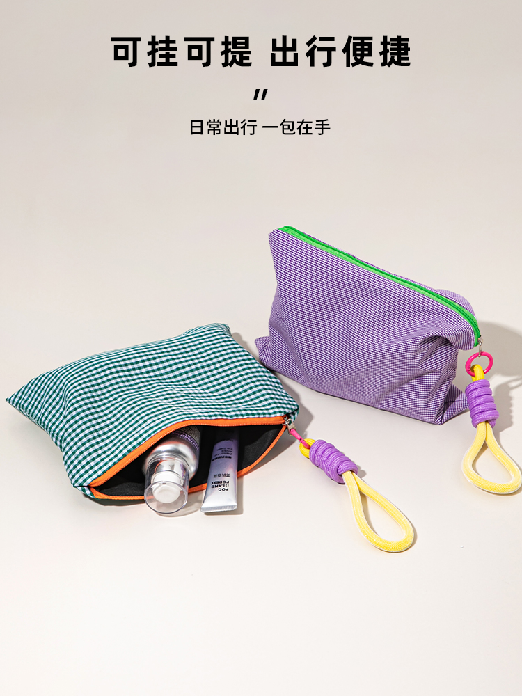 레트로 대비 색상 격자 무늬 화장품 가방, 여행용 휴대용 수납 가방, 대용량 세면 용품 가방, 클러치 백스토어 가기