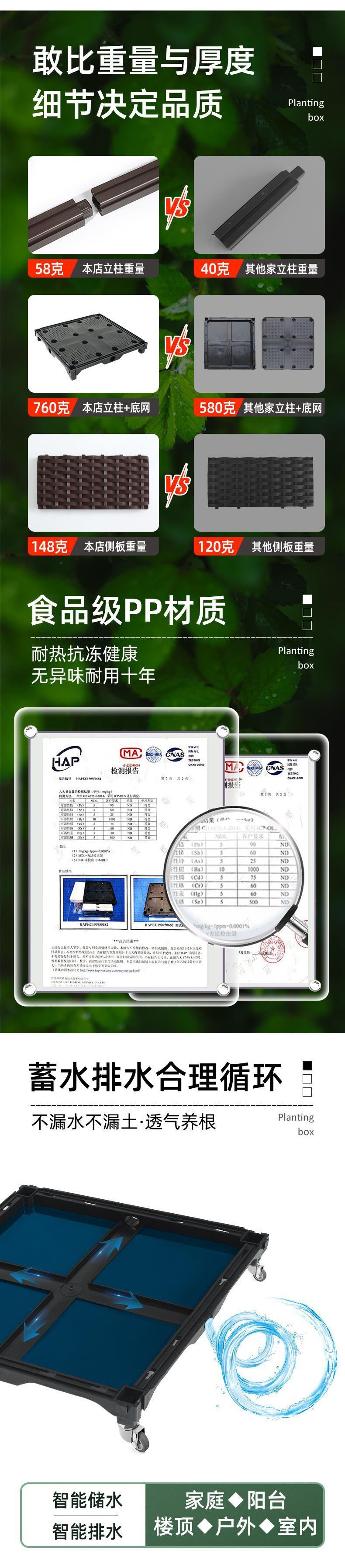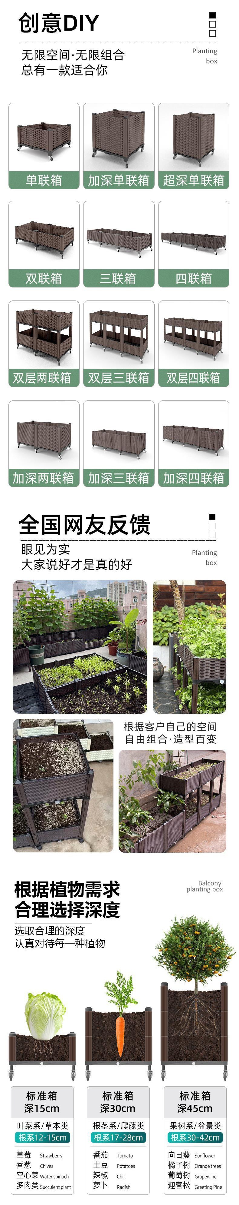 바퀴가 달린 이동식 다락방 야채 상자, 꽃 상자, 야외 심기 상자, 발코니 플라스틱 화분, 가정용 조합, 간단함