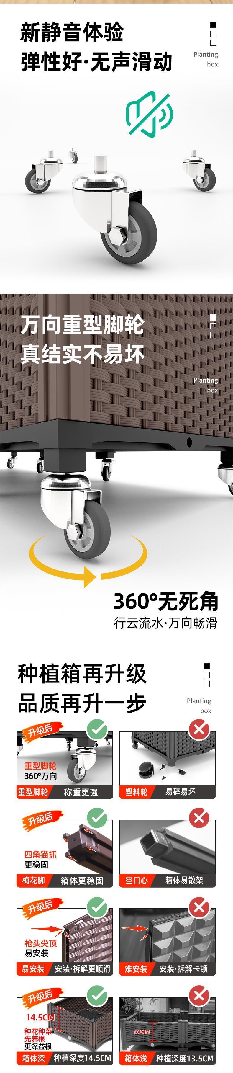 바퀴가 달린 이동식 다락방 야채 상자, 꽃 상자, 야외 심기 상자, 발코니 플라스틱 화분, 가정용 조합, 간단함스토어 가기