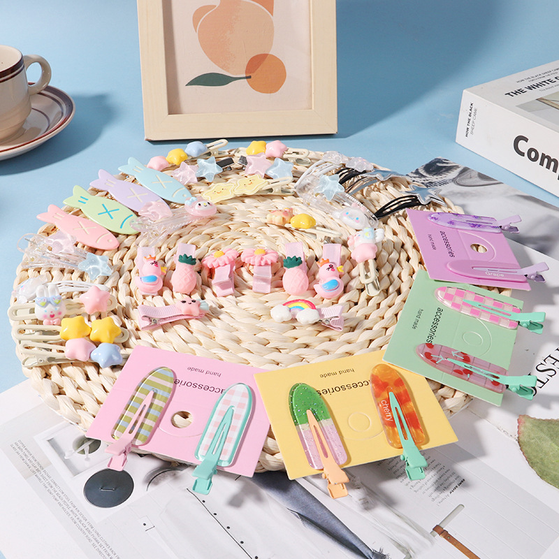 귀엽고 달콤한 1위안 없는 사이드 앞머리, 컬러풀한 소녀 머리핀, 머리핀, 어린이 스타일 만화 도매스토어 가기