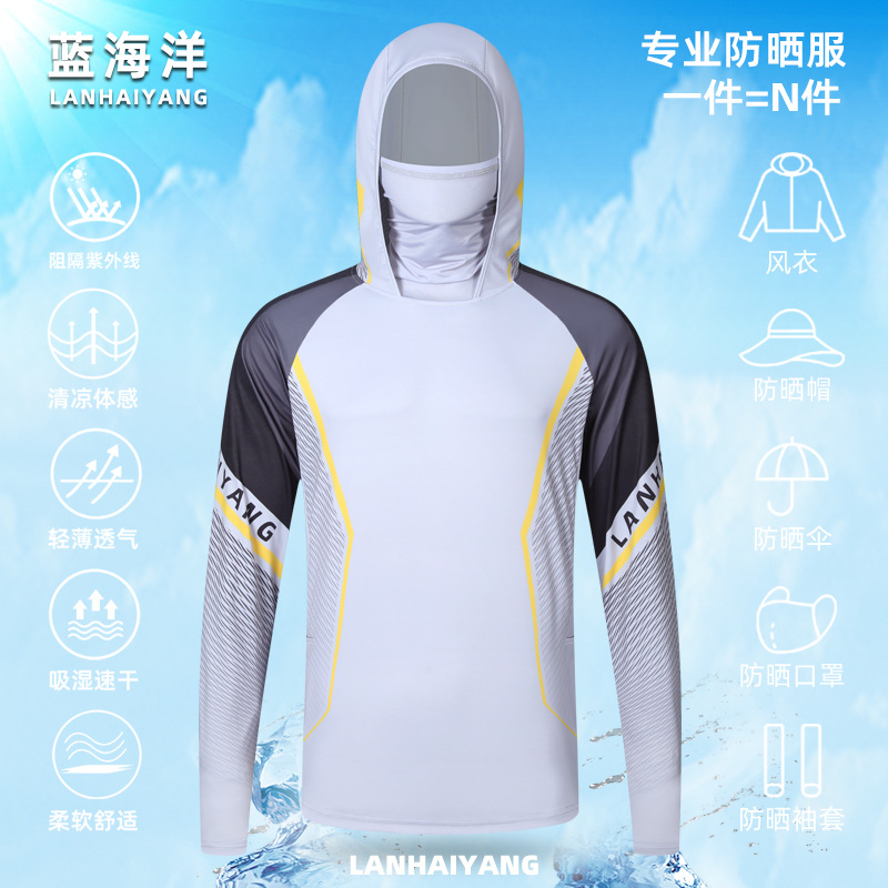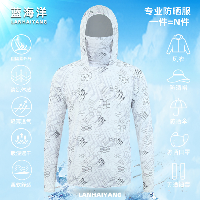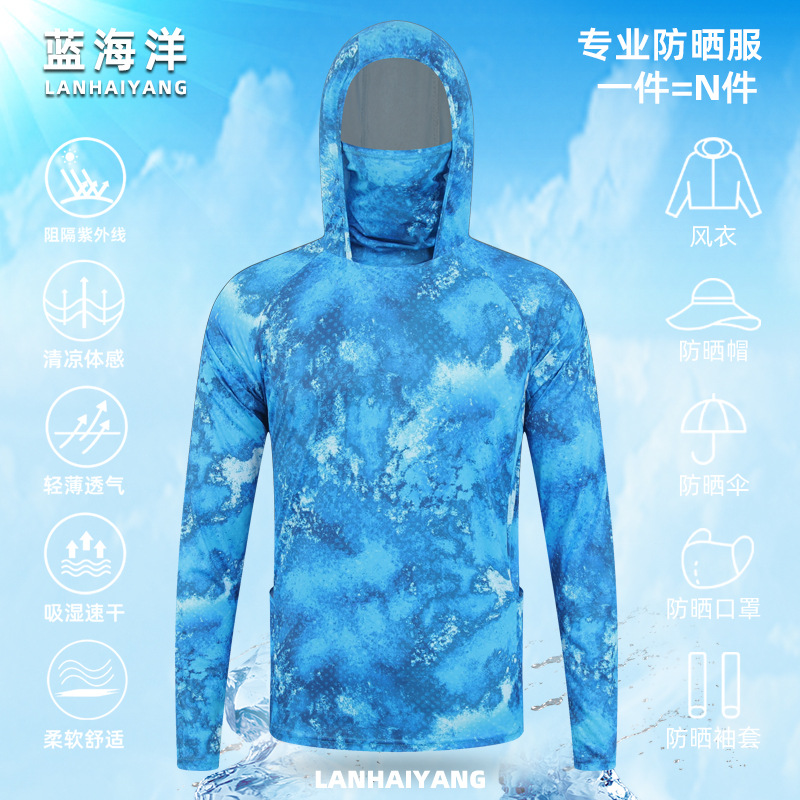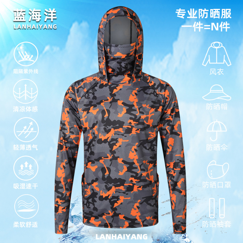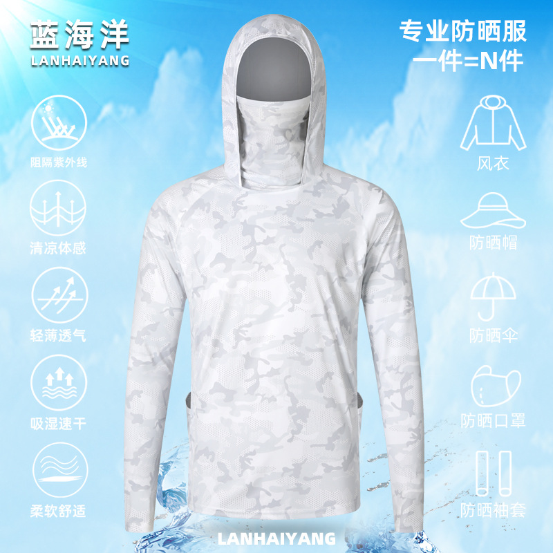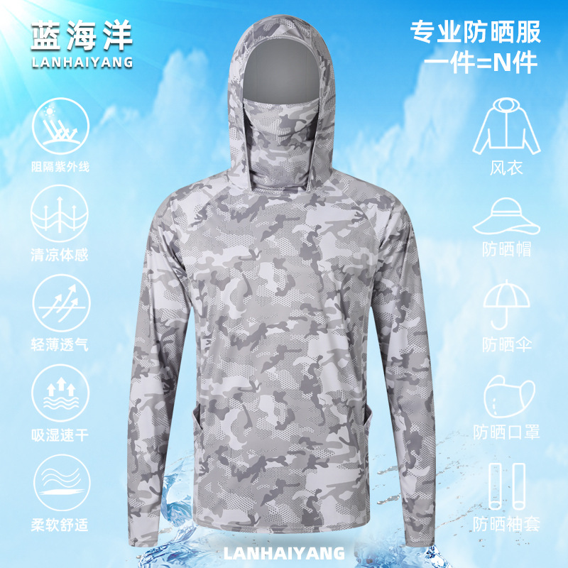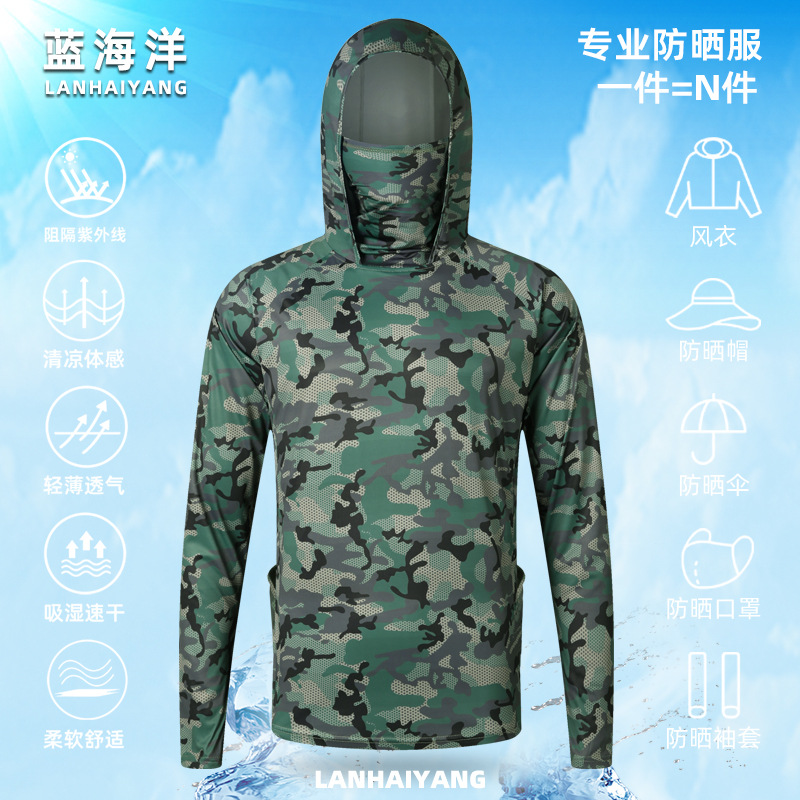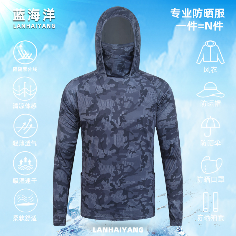 남성용 야외 자외선 차단 의류, 위장, 가볍고 통기성이 뛰어난 얼음 실크 낚시 의류, 루어 후드 긴팔 낚시 의류