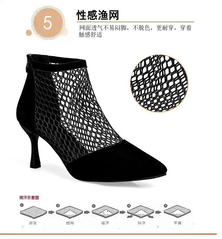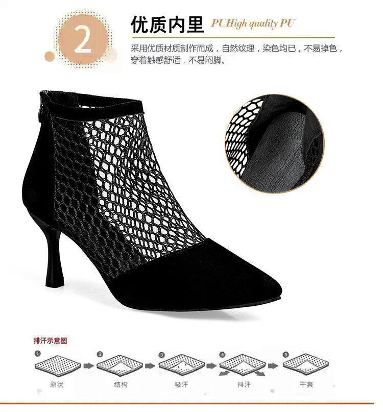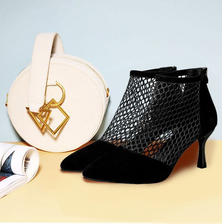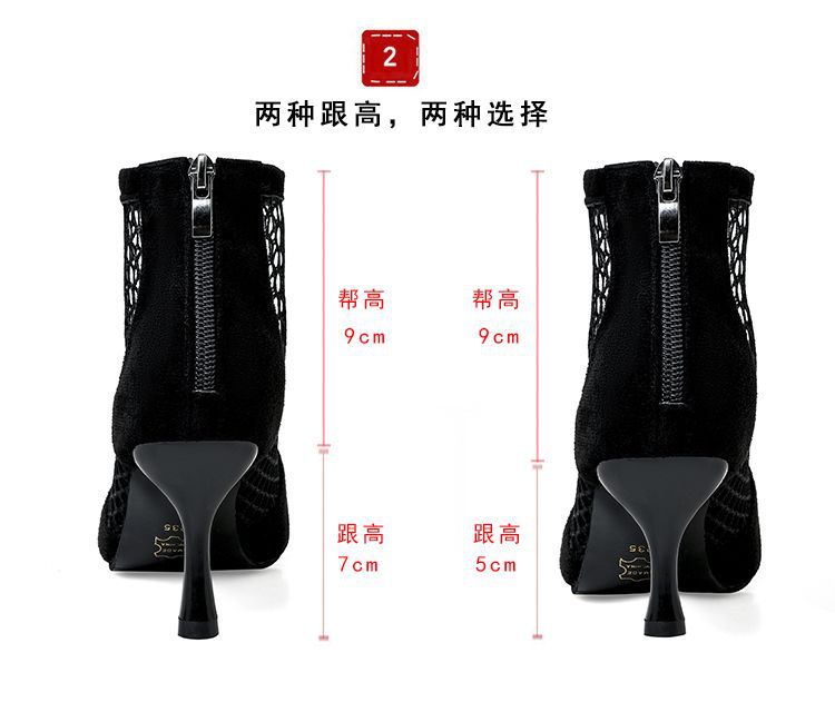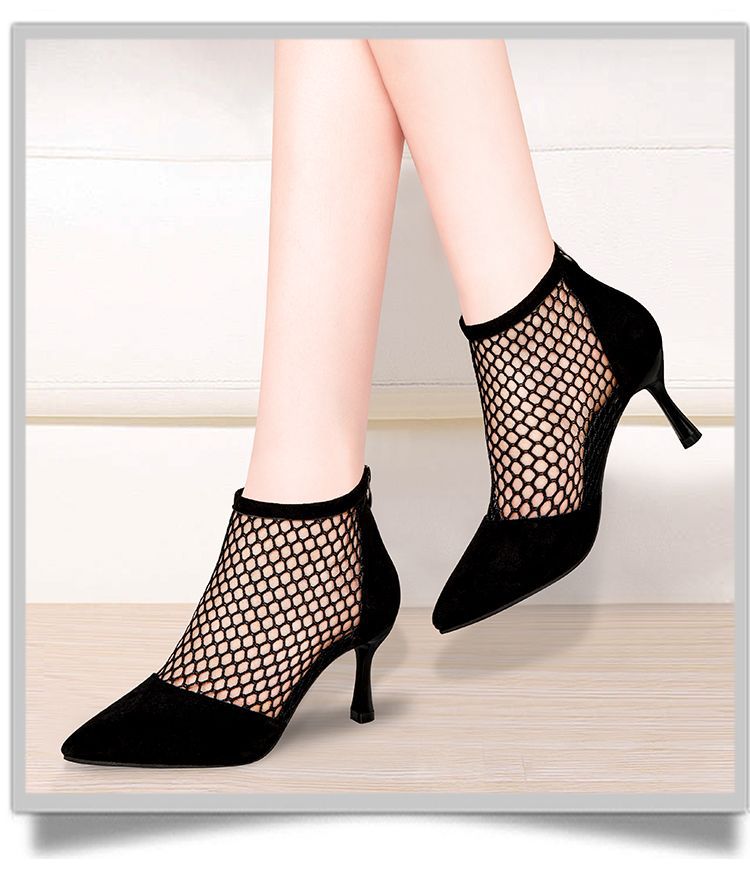 여성을 위한 섹시한 메쉬 슈즈, 봄, 가을 스틸레토 미드힐 싱글 부츠, 새로운 패션 숏부츠, 포인티드 토 메쉬 부츠, 샌들, 하이힐스토어 가기
