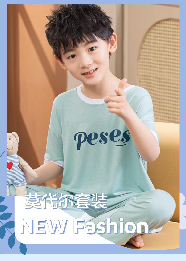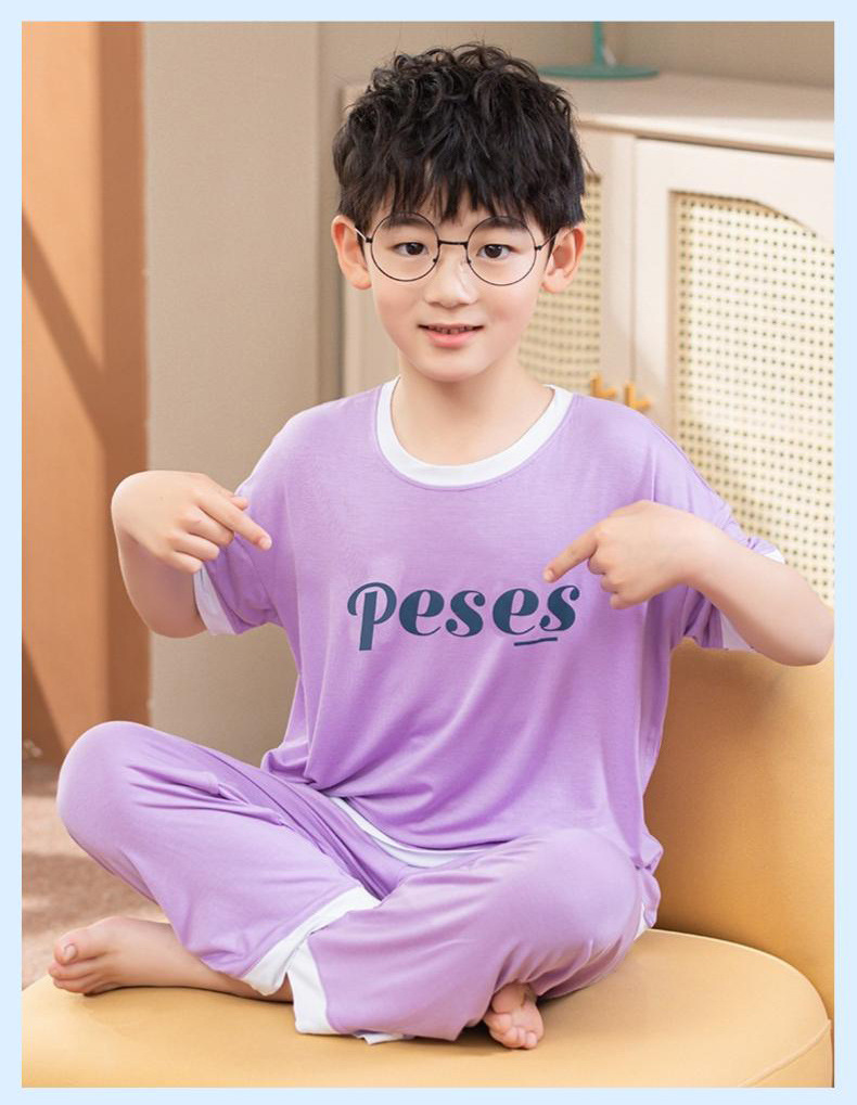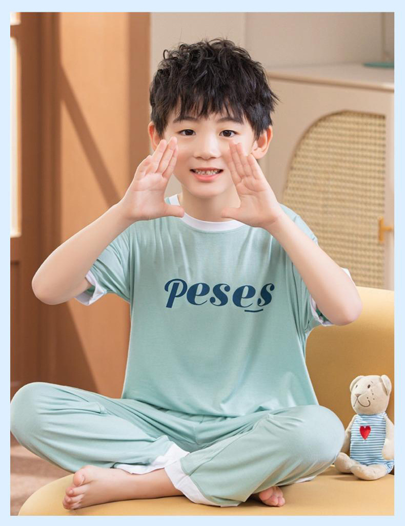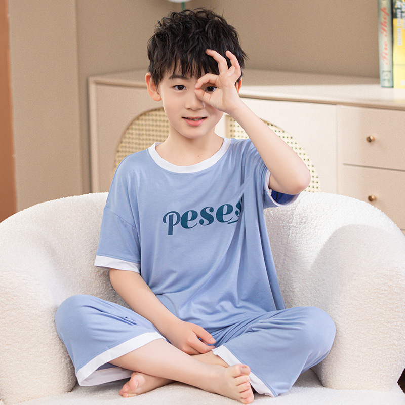 소년 모달 잠옷 여름 2025 새로운 어린이 여름 얇은 소년 큰 어린이 여름 에어컨 가정 의류스토어 가기