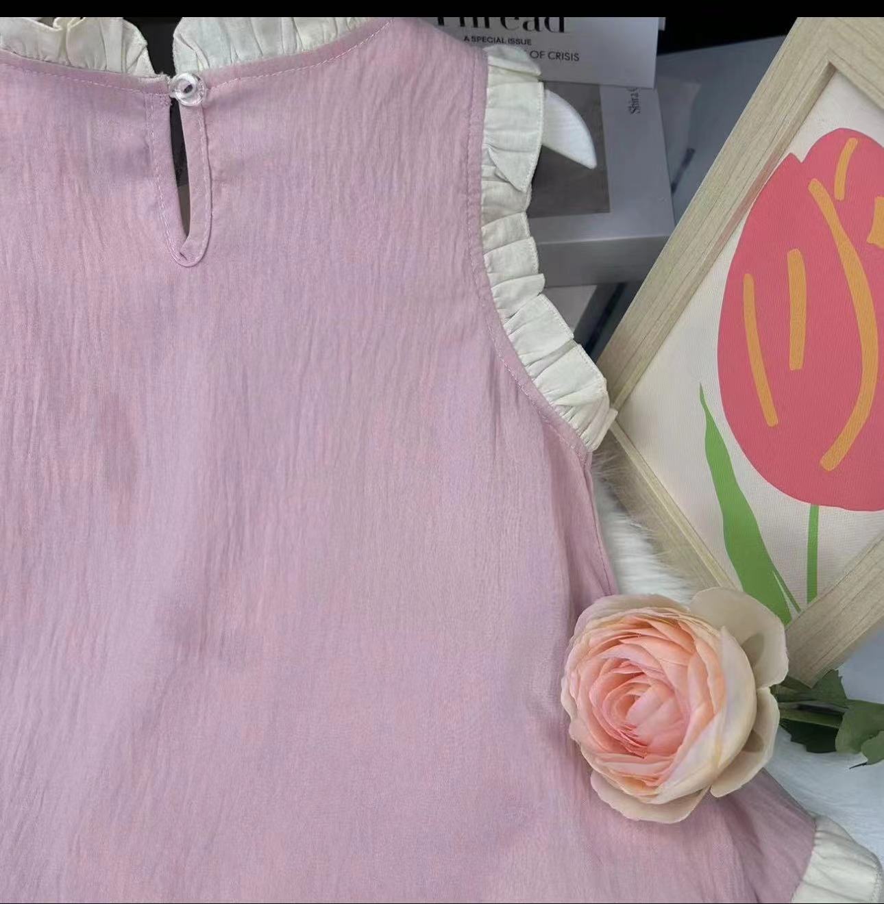 어린이 하프 길이 거즈 스커트 여성 클라우드 코튼 여름 얇은 소녀 민소매 레이스 베이비 드레스 공주 드레스
