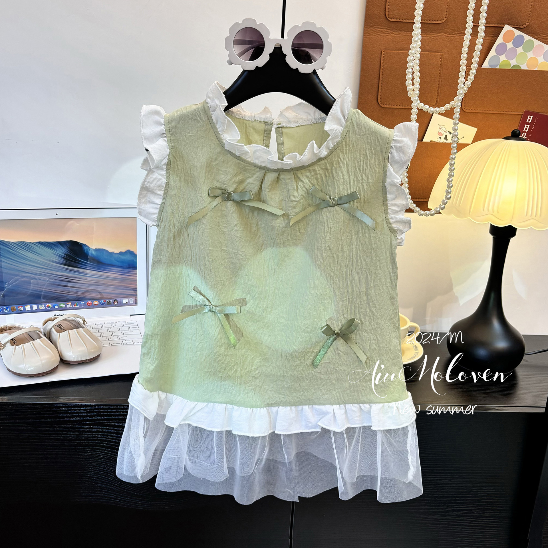 어린이 하프 길이 거즈 스커트 여성 클라우드 코튼 여름 얇은 소녀 민소매 레이스 베이비 드레스 공주 드레스스토어 가기