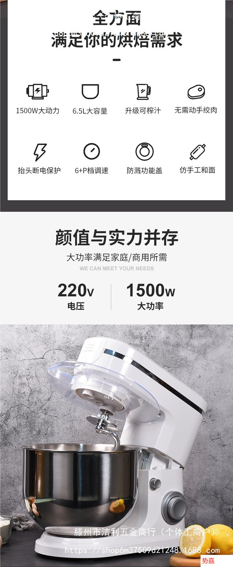 • 6.5L-1500W 요리사 기계 + 고기 분쇄 액세서리