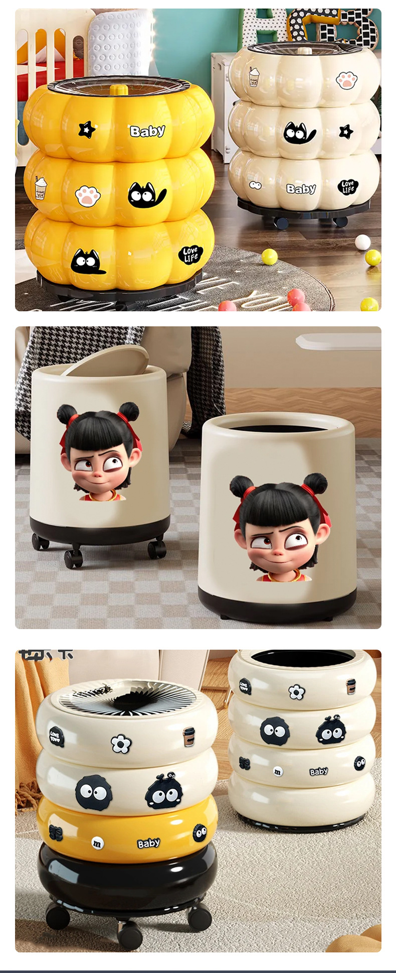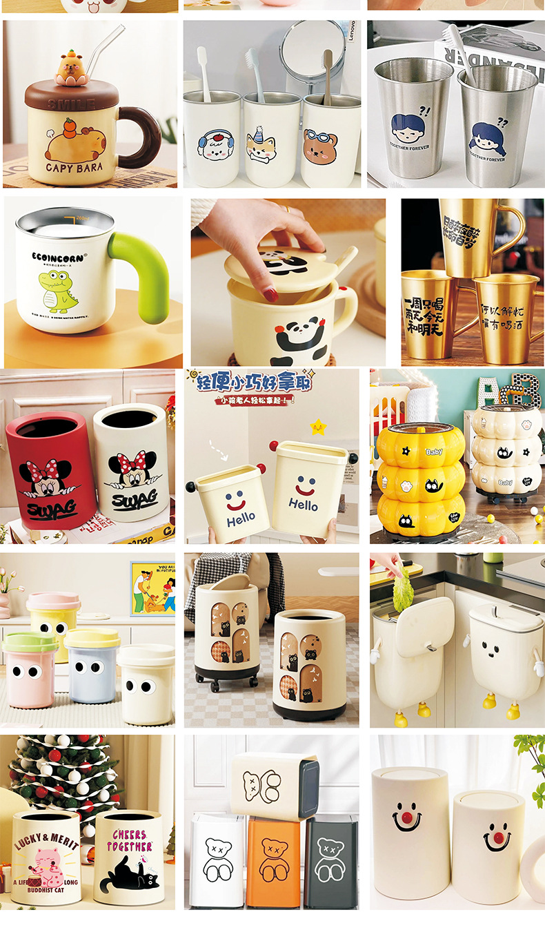 새로운 인스 스타일 창의적인 거실 개성 입체 스티커 방수 무흔적 만화 귀여운 쓰레기통 스티커스토어 가기