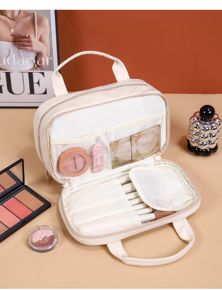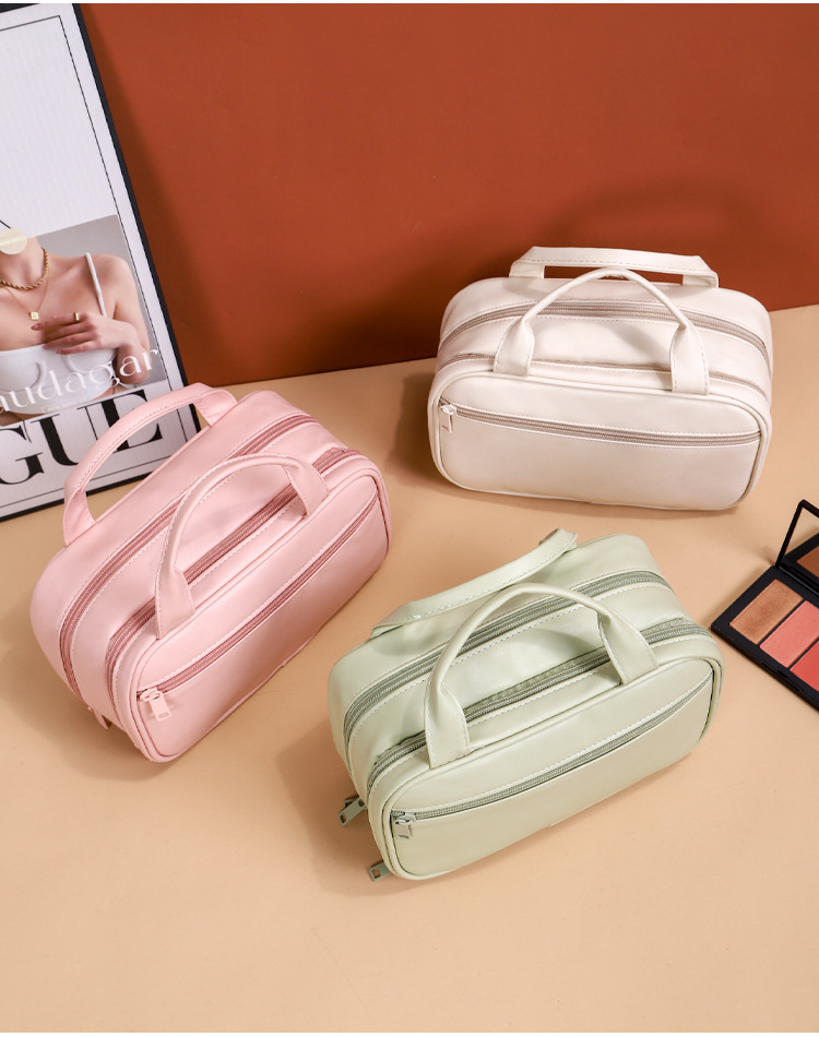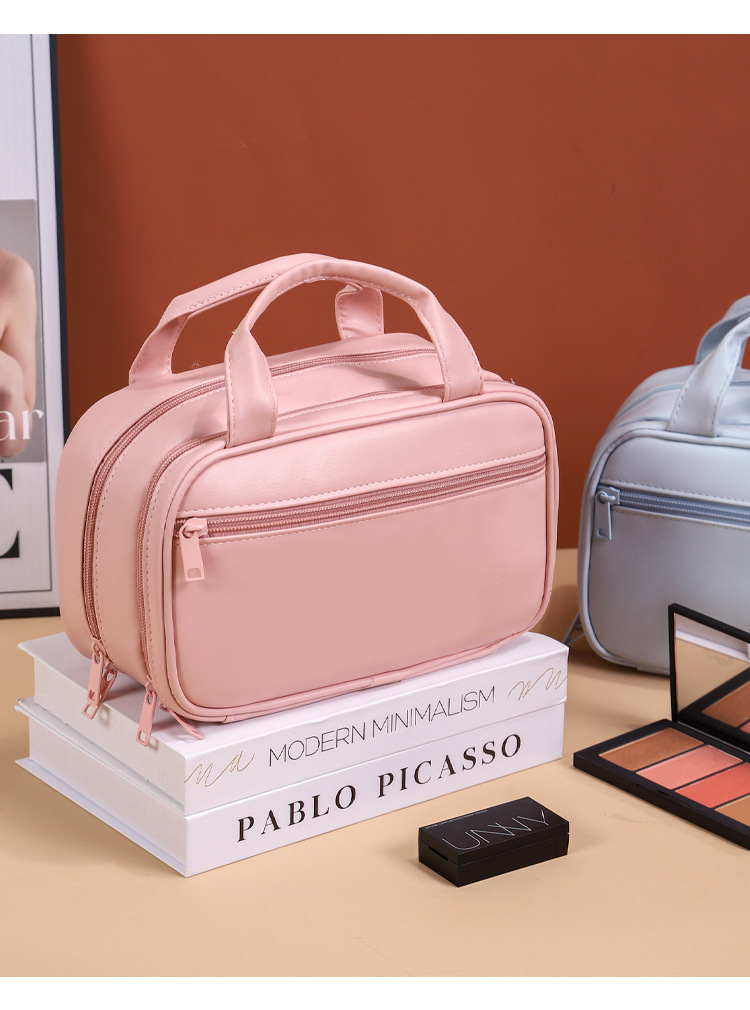 신형 PU 단색 이중층 휴대용 화장품 가방 대용량 여행용 화장품 가방 여성용 휴대용 외출용 분할 수납 가방스토어 가기