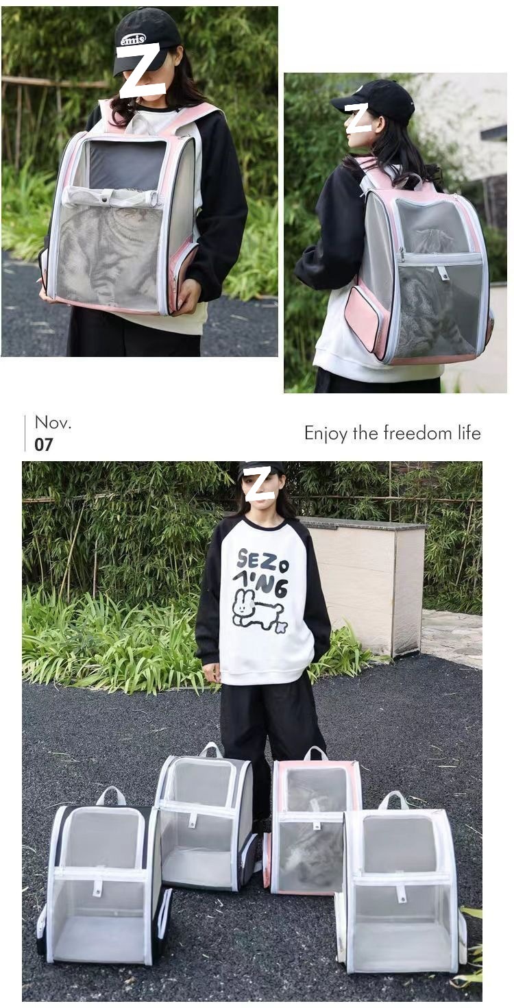 애완 동물 배낭 휴대용 접이식 통기성 야외 휴대용 고양이 가방 투명 고양이 가방 대용량 제조 업체스토어 가기