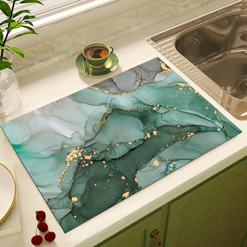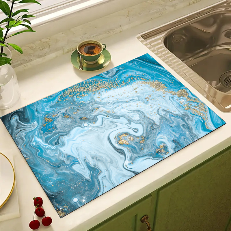 가벼운 고급 대리석 주방 조리대 배수 패드 부드러운 규조토 진흙 흡수 패드 탁상 식기 건조 패드 컵 받침