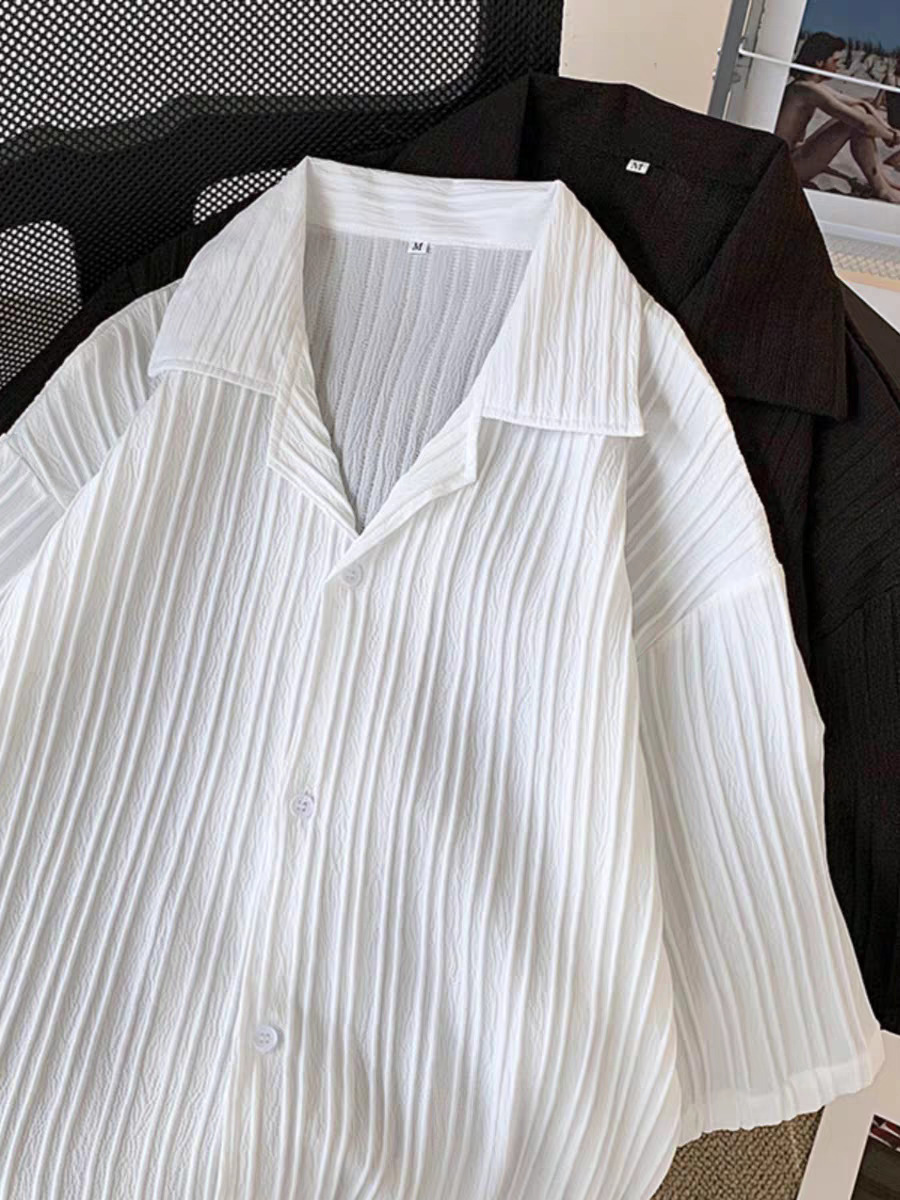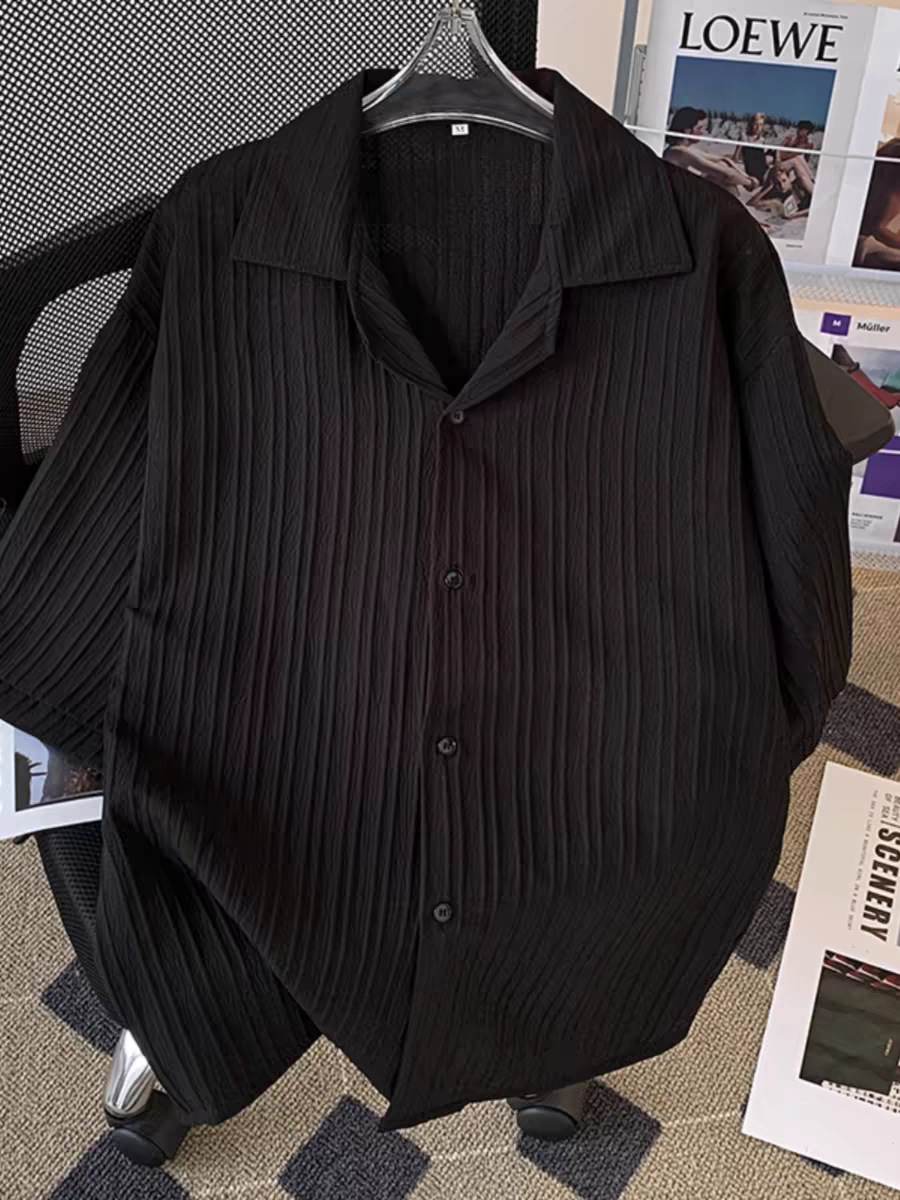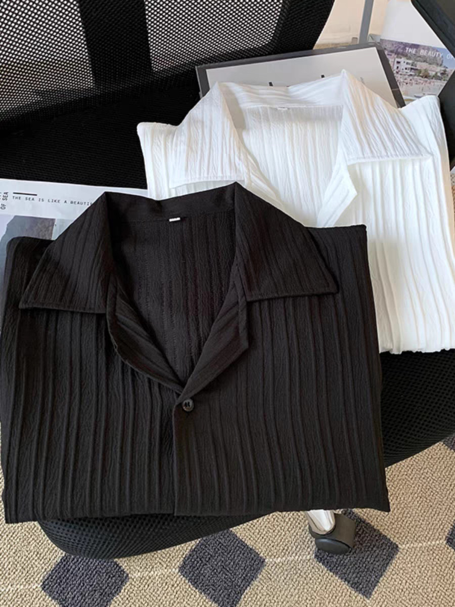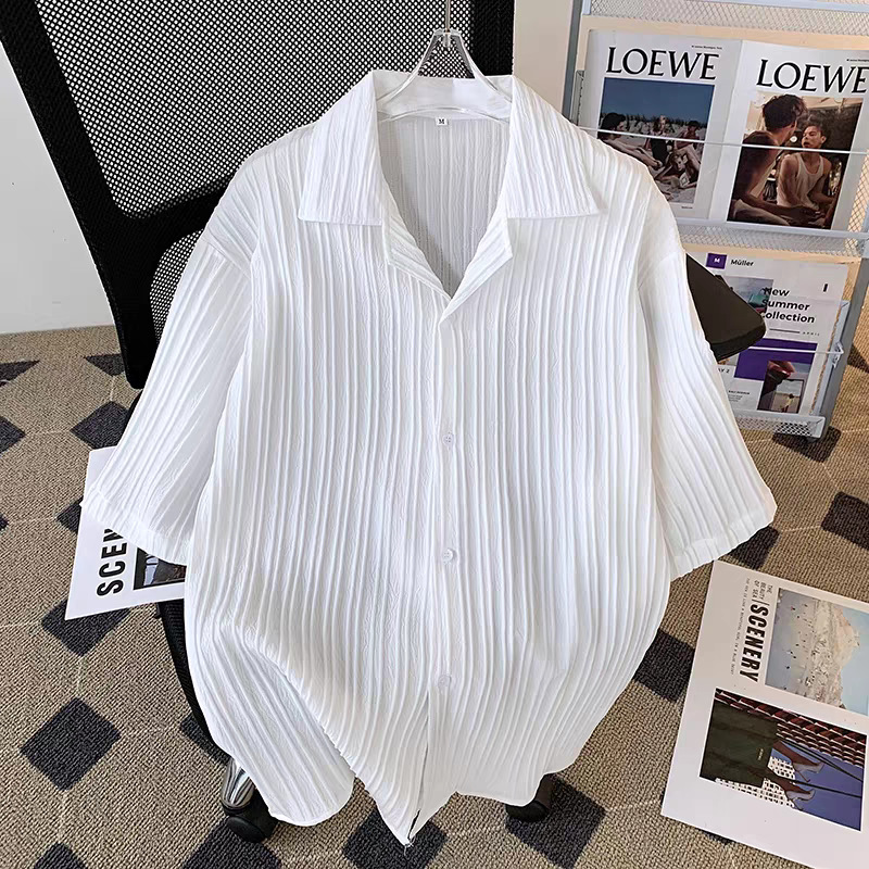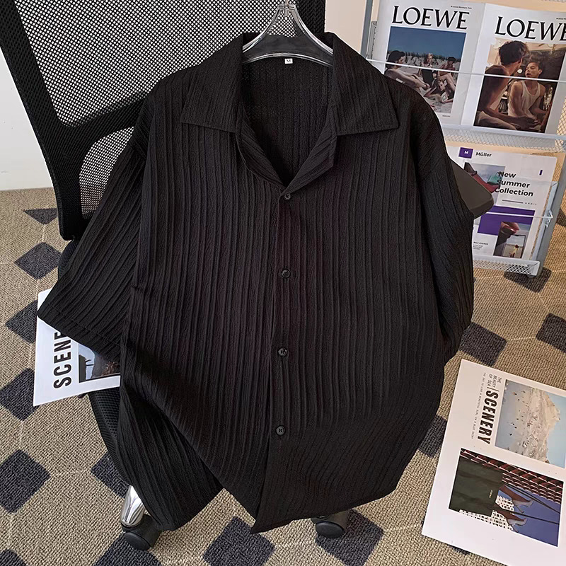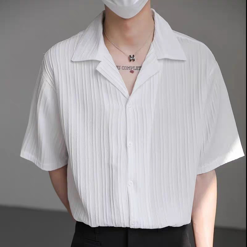 쿠바 칼라 질감 셔츠 반팔 남성 여름 신작 다용도 캐주얼 티셔츠 반팔 루즈 하이 엔드 재킷
