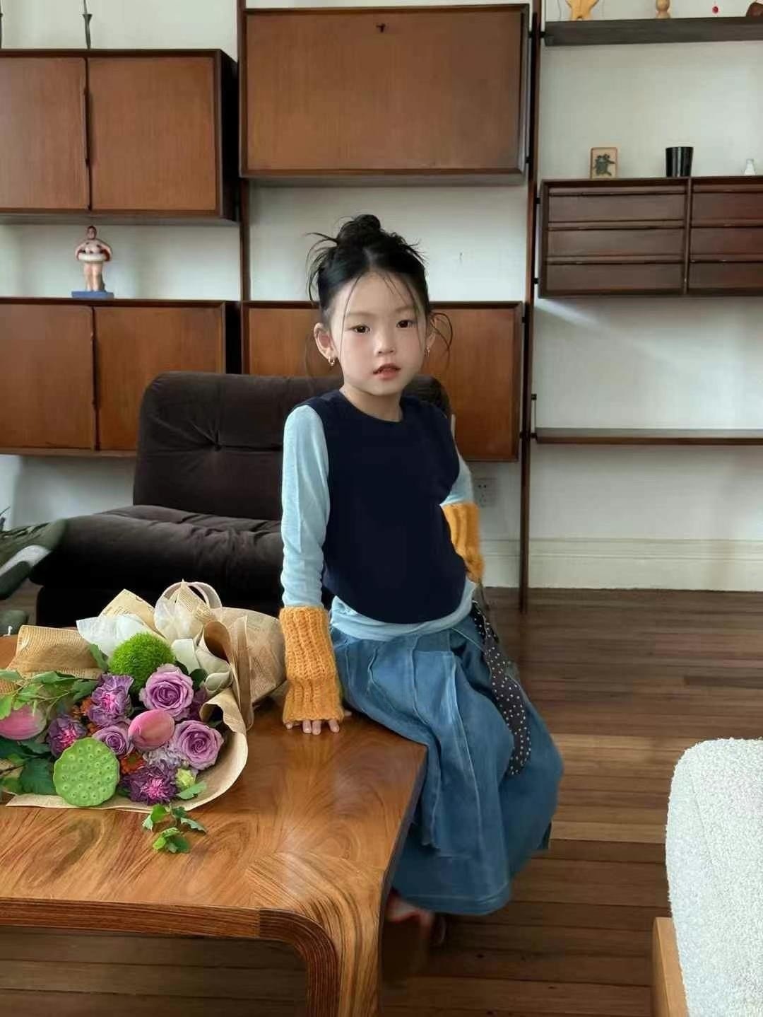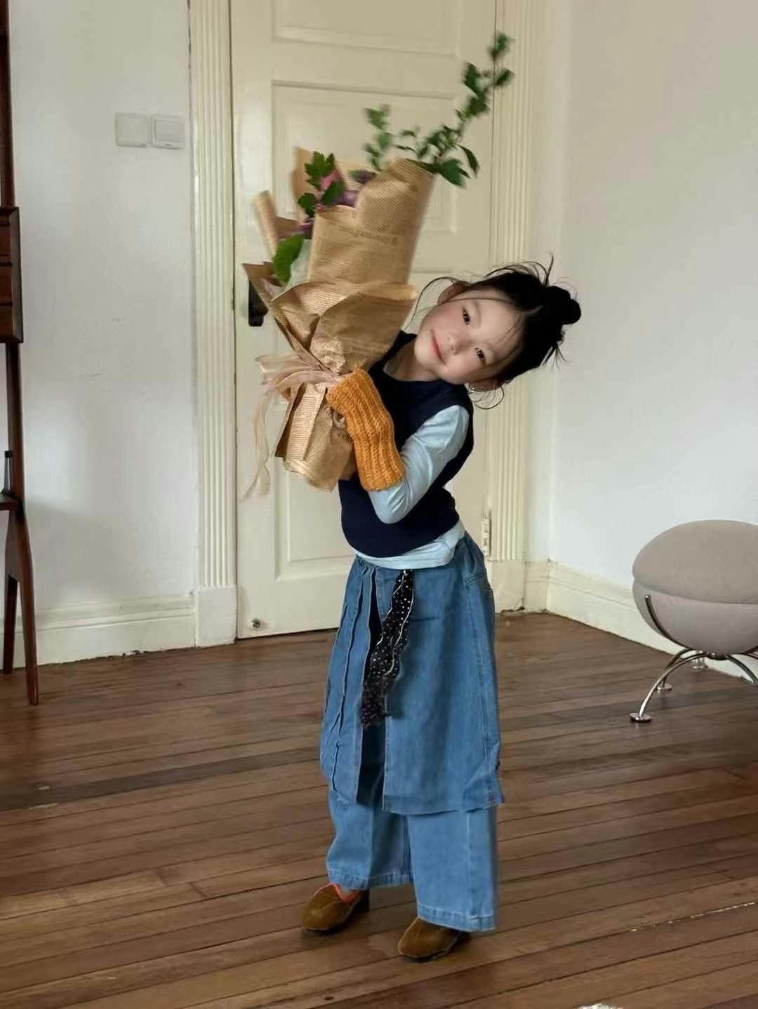 25 어린이 복고풍 느슨한 불규칙한 치마 바지 9 점 바지 가을 새로운 한국 스타일 아기 소녀 솔리드 컬러 청바지 유행스토어 가기