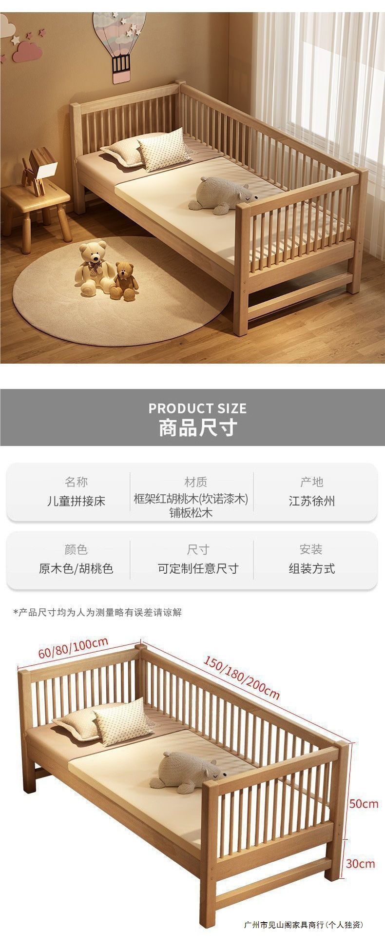 너도밤나무 어린이 접합 침대 연장 및 와이드 가드 레일 아기 소년 소녀 침대 접합 대형 사이드 침대 순수 단단한 나무스토어 가기