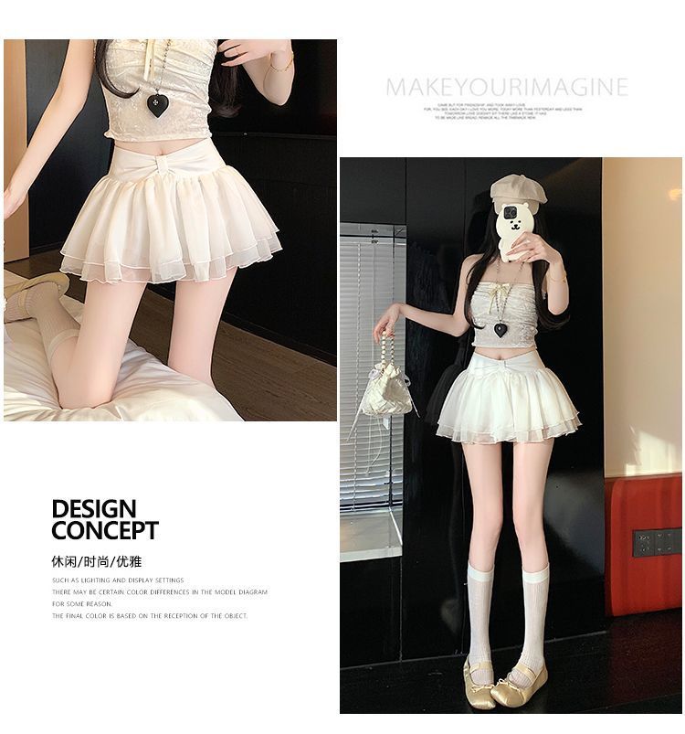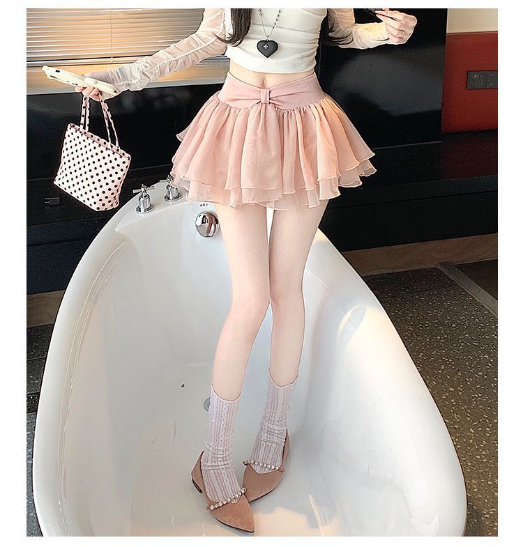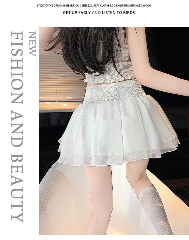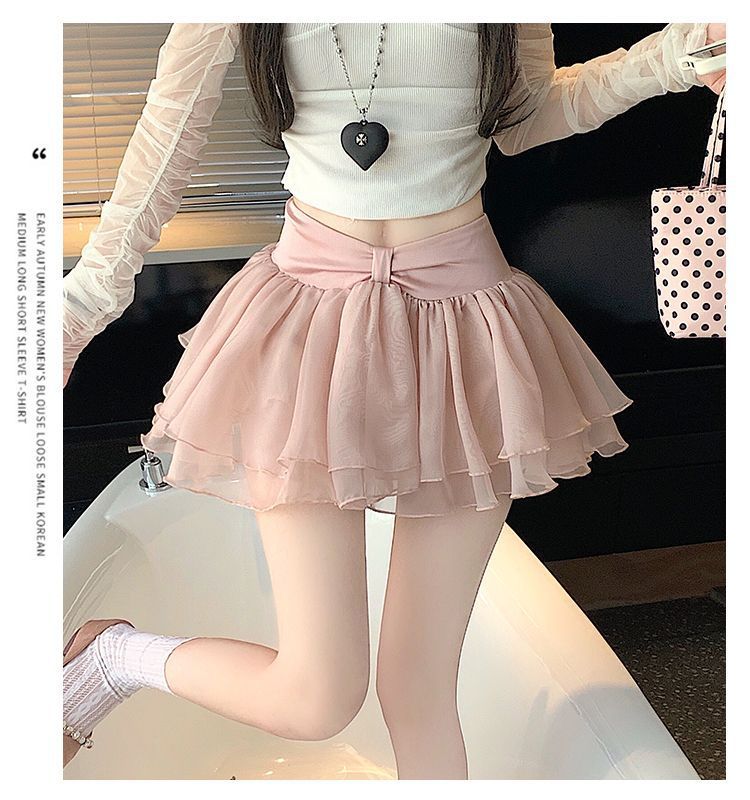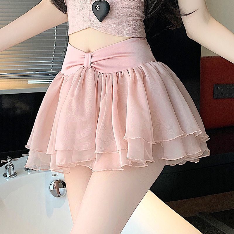 여름용 발레 스타일 핑크 메쉬 퍼프 케이크 스커트 여성용 A 라인 스커트 플리츠 거즈 스커트 핫 소녀 울트라 쇼트 스커트스토어 가기