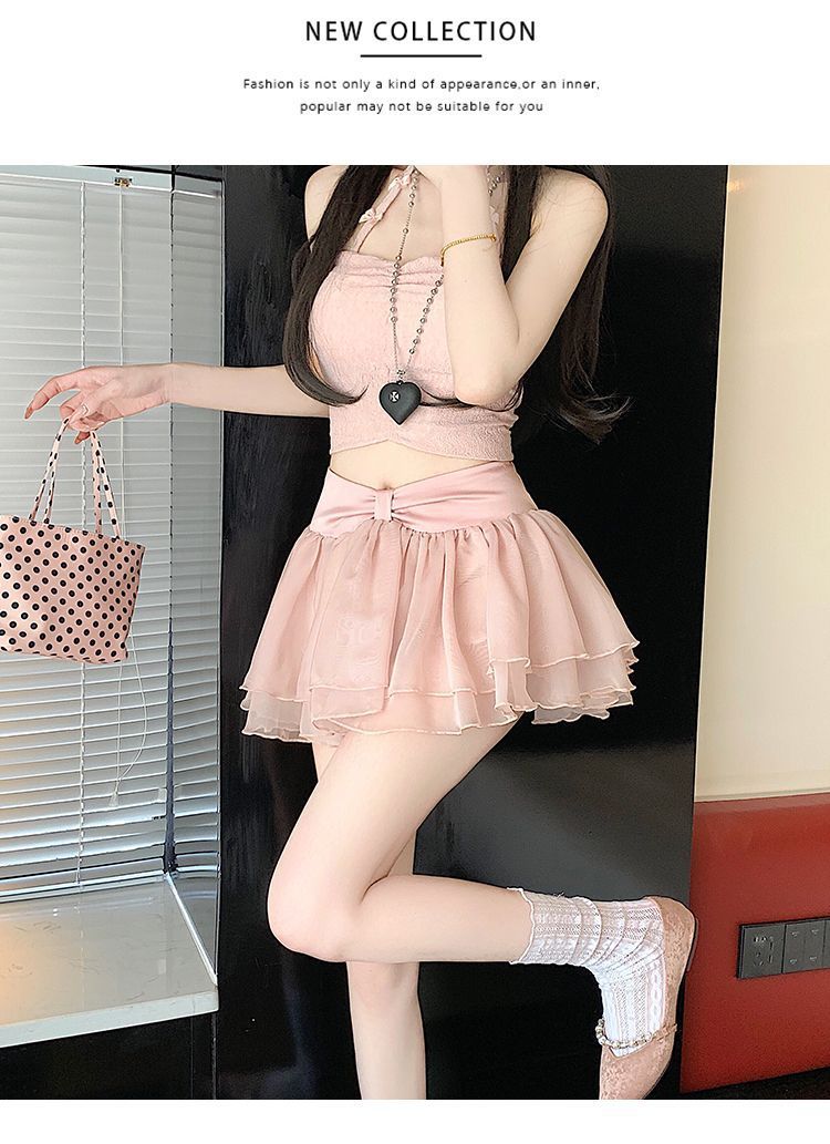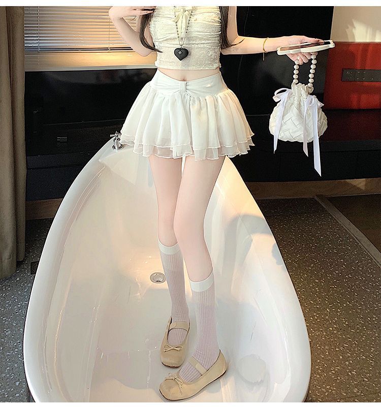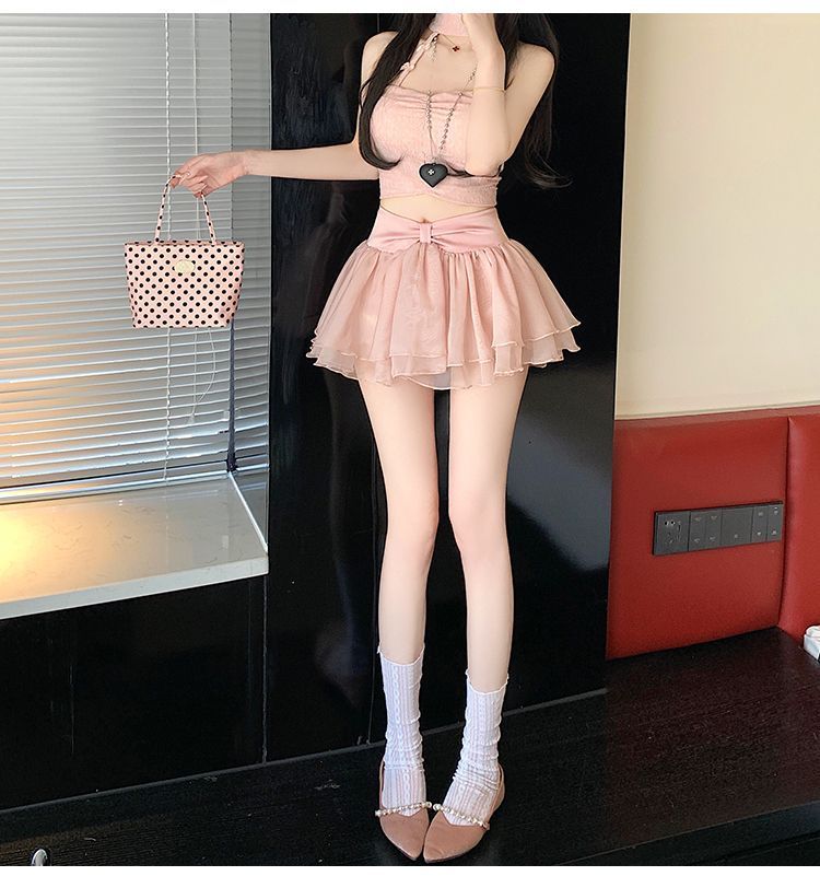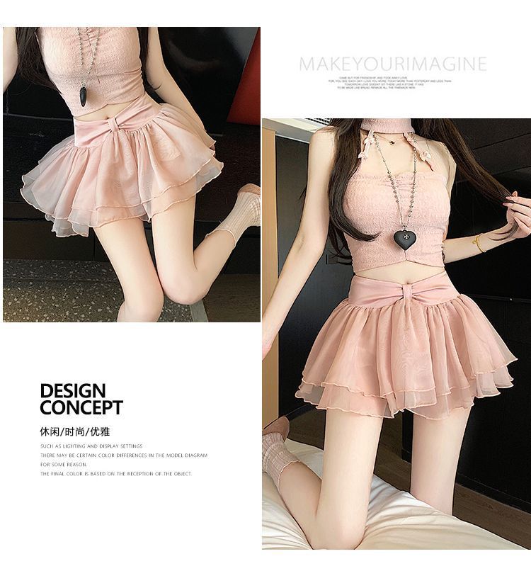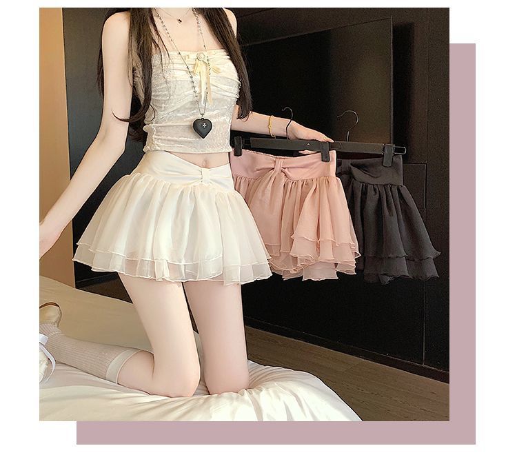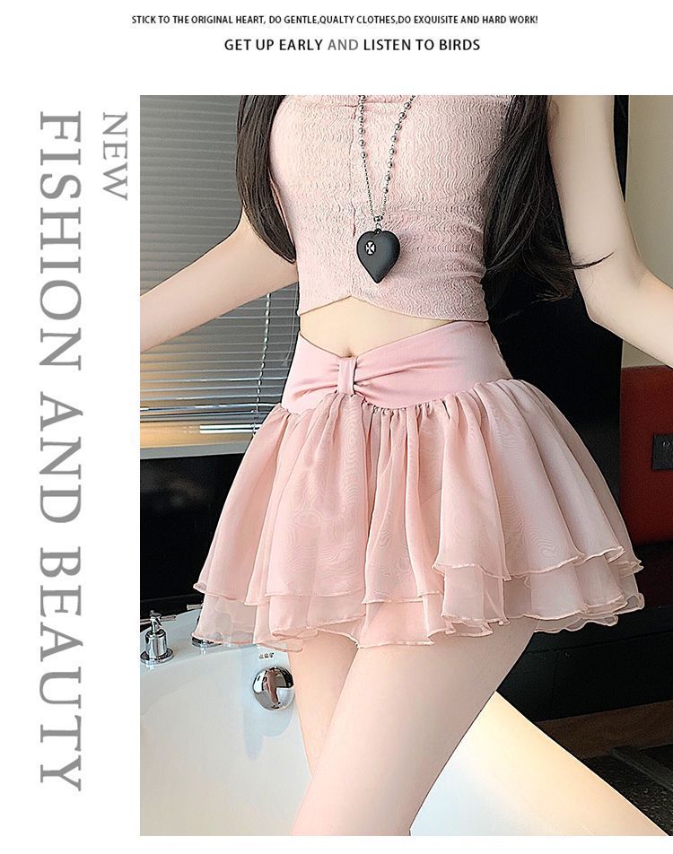 여름용 발레 스타일 핑크 메쉬 퍼프 케이크 스커트 여성용 A 라인 스커트 플리츠 거즈 스커트 핫 소녀 울트라 쇼트 스커트스토어 가기