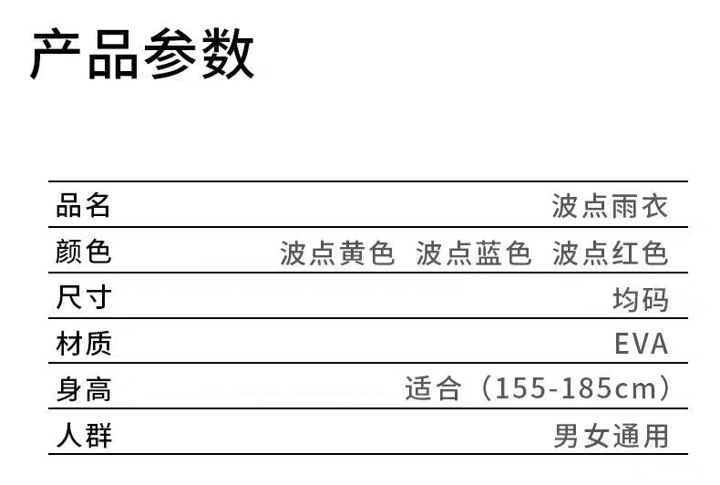 두꺼운 폴카 도트 비옷, 여행용 편리한 비옷, 개별 포장, 일회용이 아닌 EVA 도트 비옷 도매