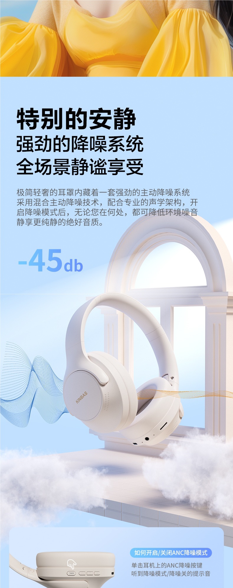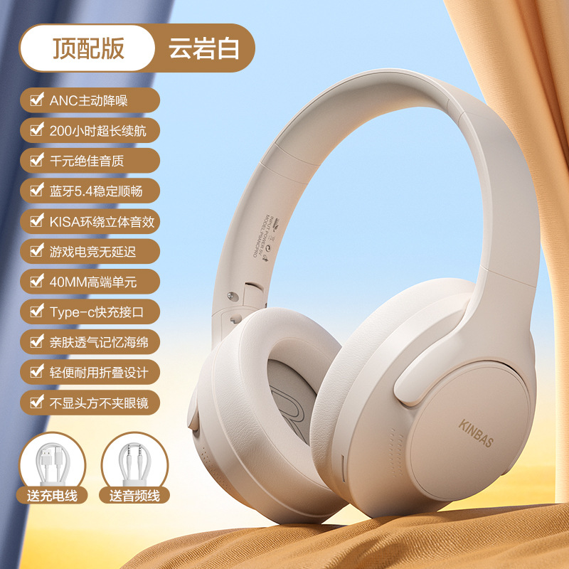 • [상위 버전 - 윤옌 화이트] ANC 능동형 소음 감소 + 천 위안 음질 + 200시간의 긴 배터리 수명 + 게임 및 e스포츠에서 지연 없음
