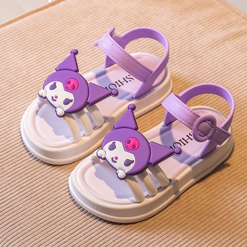 Kuromi 소녀 샌들 어린 소녀 귀여운 만화 미끄럼 방지 부드러운 바닥 중대형 어린이를위한 중공 아기 로마 공주 신발스토어 가기