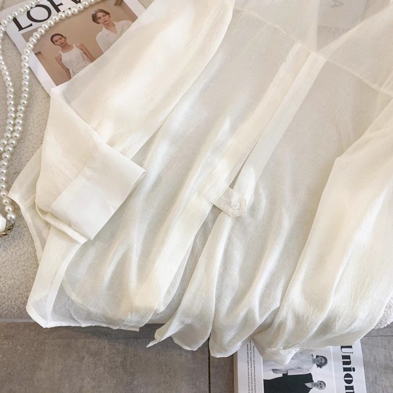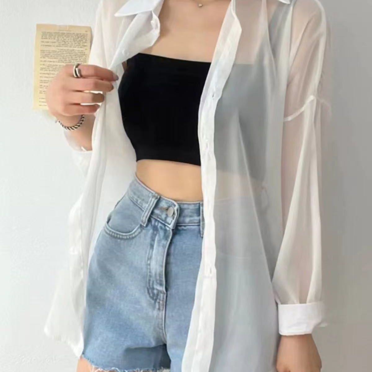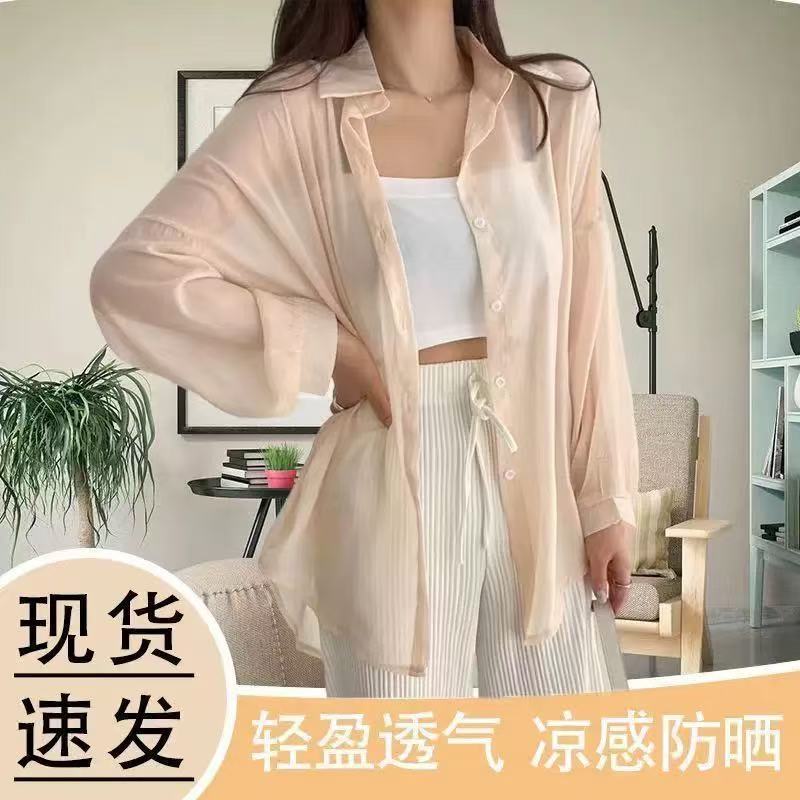 여성용 중간 길이 자외선 차단 셔츠, 여름용 얇은 아이스 실크 가디건 셔츠, 여름용 쉬폰 셔츠, 여성용 백리스 탑스토어 가기