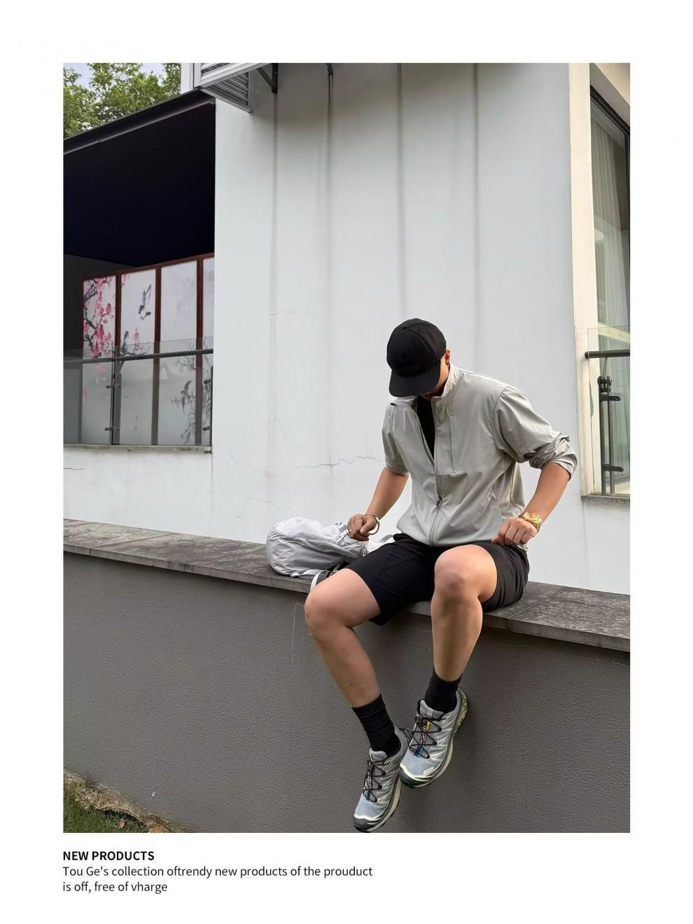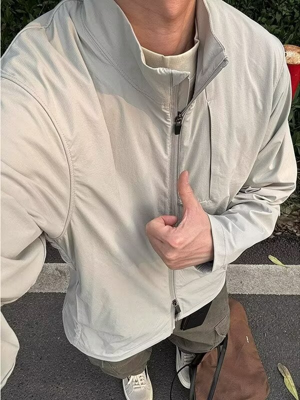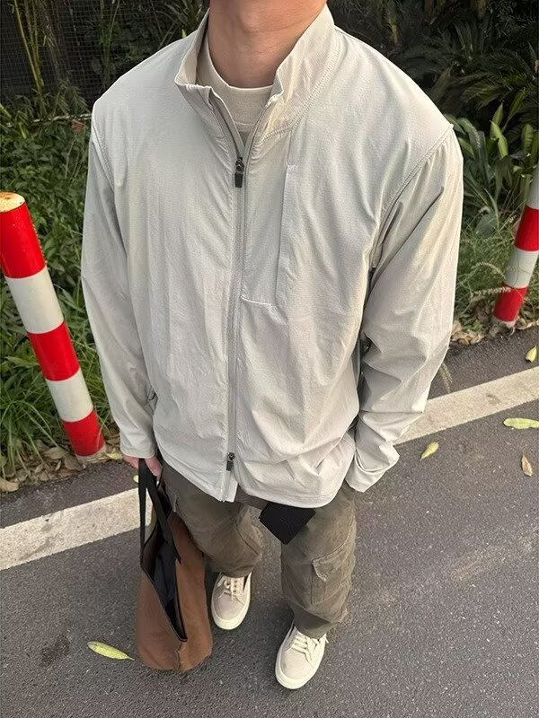 아메리칸 기능성 얇은 재킷 라이트 그레이 아이스 실크 자외선 차단 남성 여름 시즌 가볍고 시원한 속건성 스탠드 칼라 재킷