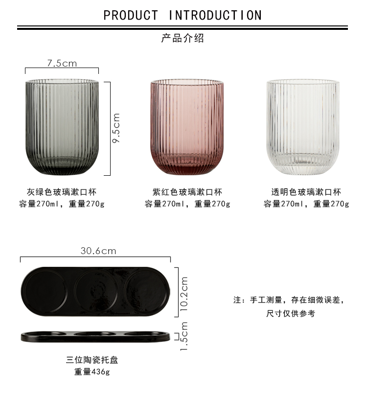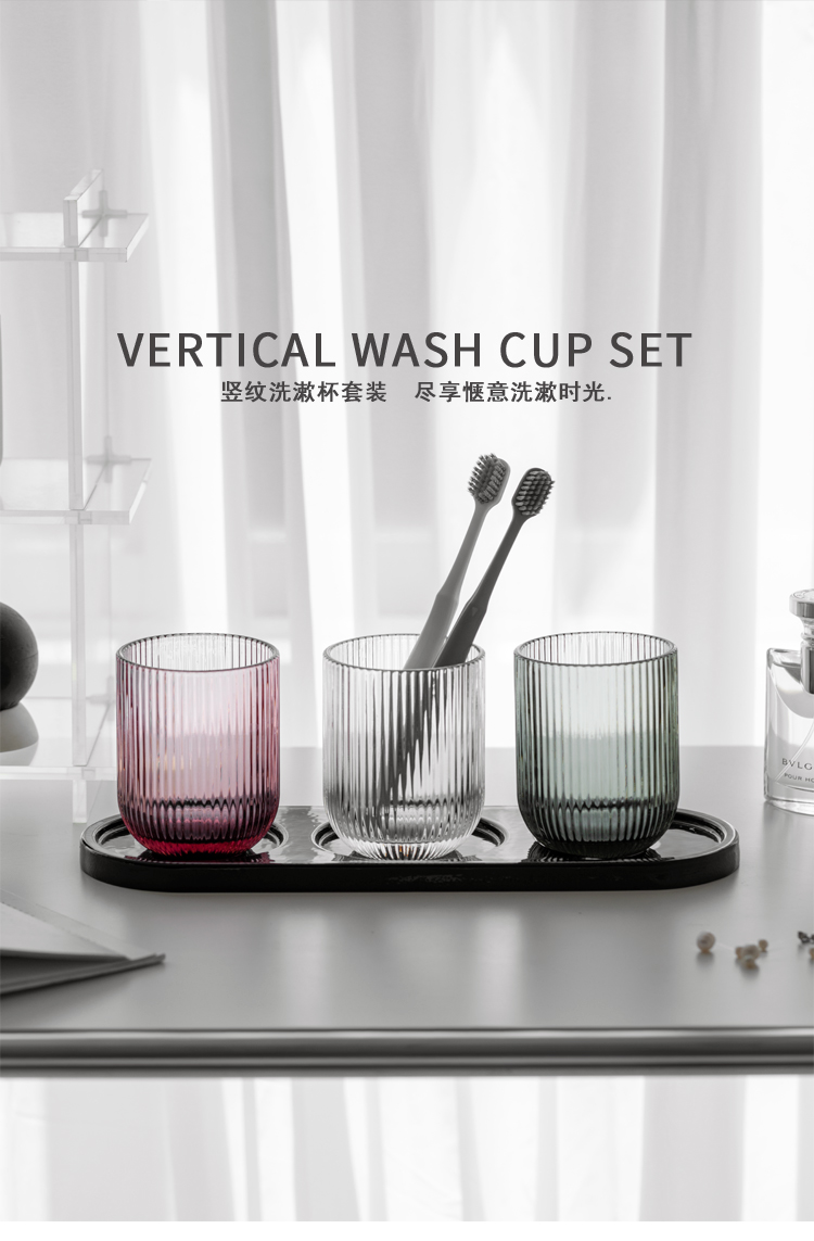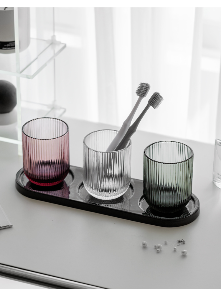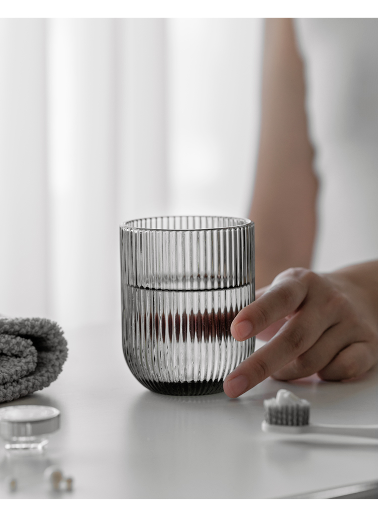 북유럽 심플한 단색 세로무늬 유리 구강세정컵, 3인 가족 칫솔컵, 호텔 B&B 칫솔컵, 칫솔컵스토어 가기