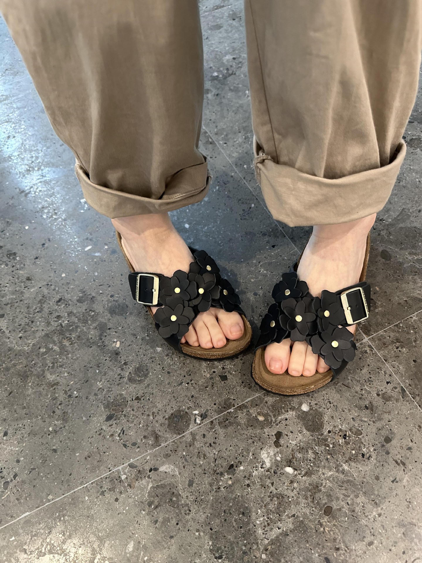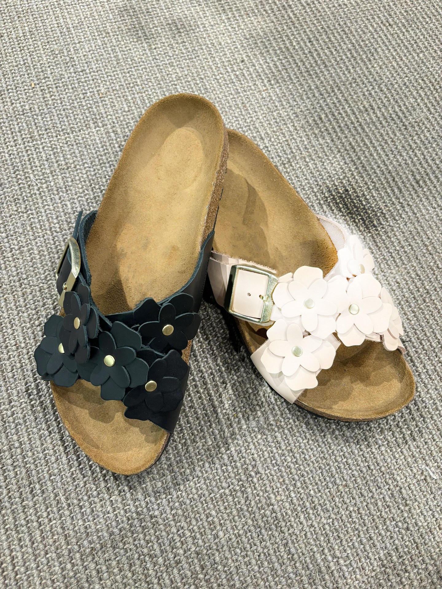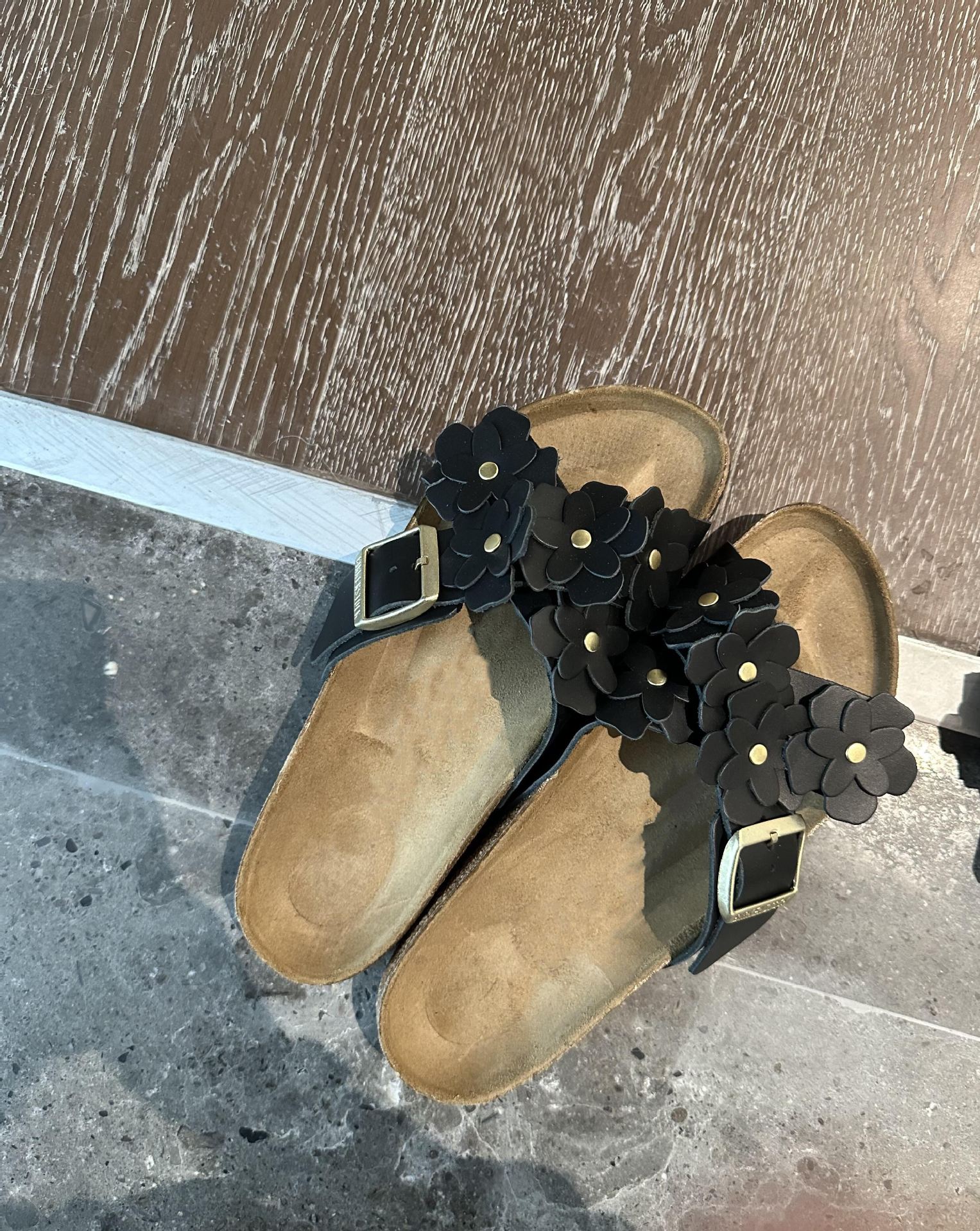 [재고 있음] 여름 아우터용 여성용 스위트 플라워 원라인 버클 오픈 토 슬리퍼 두꺼운 밑창 복고풍 높이 증가 버켄스탁 샌들