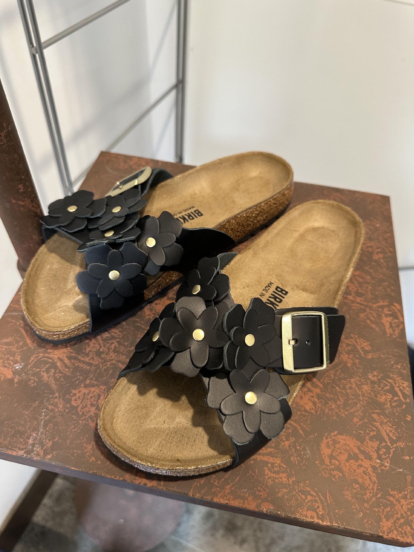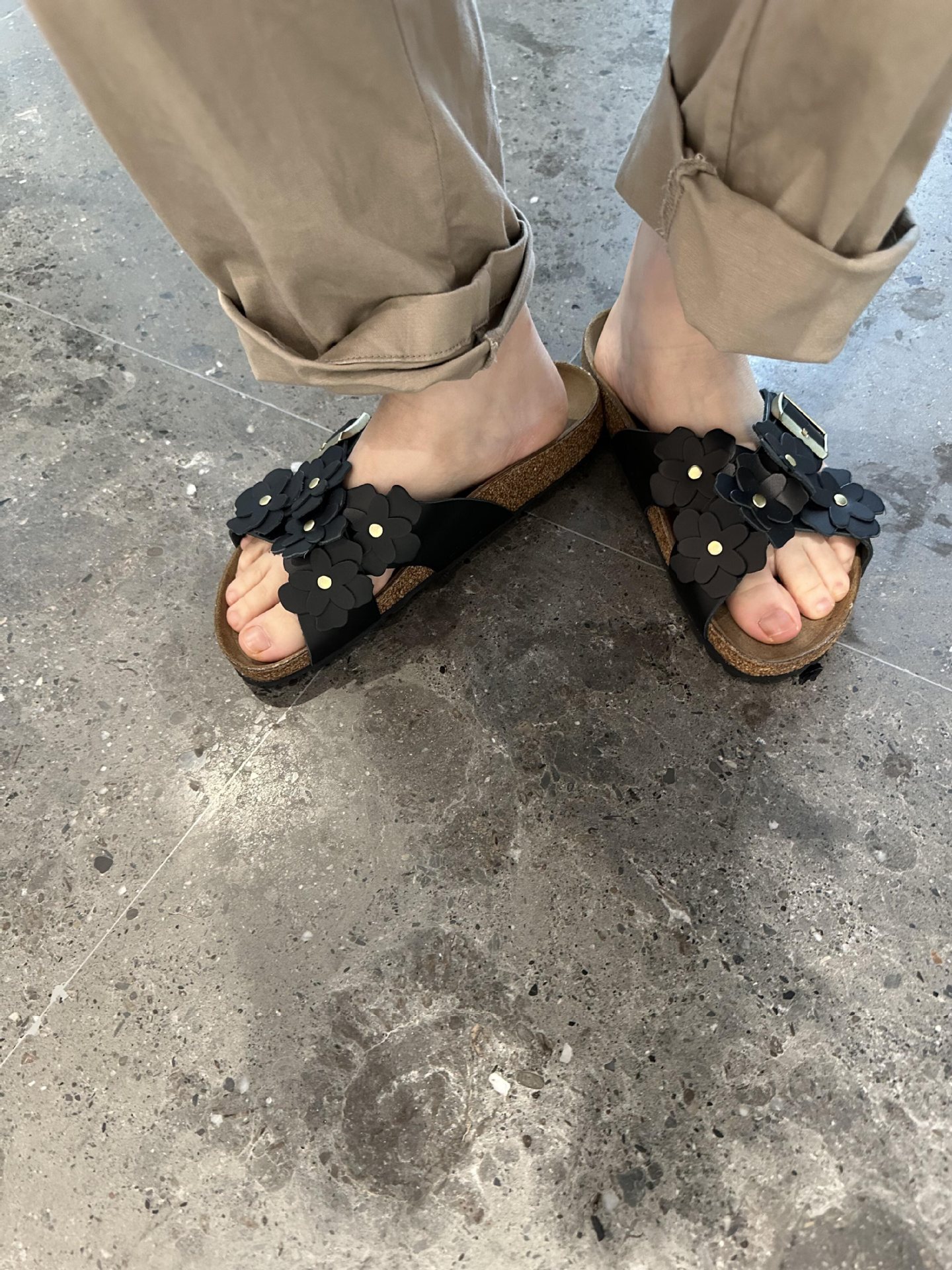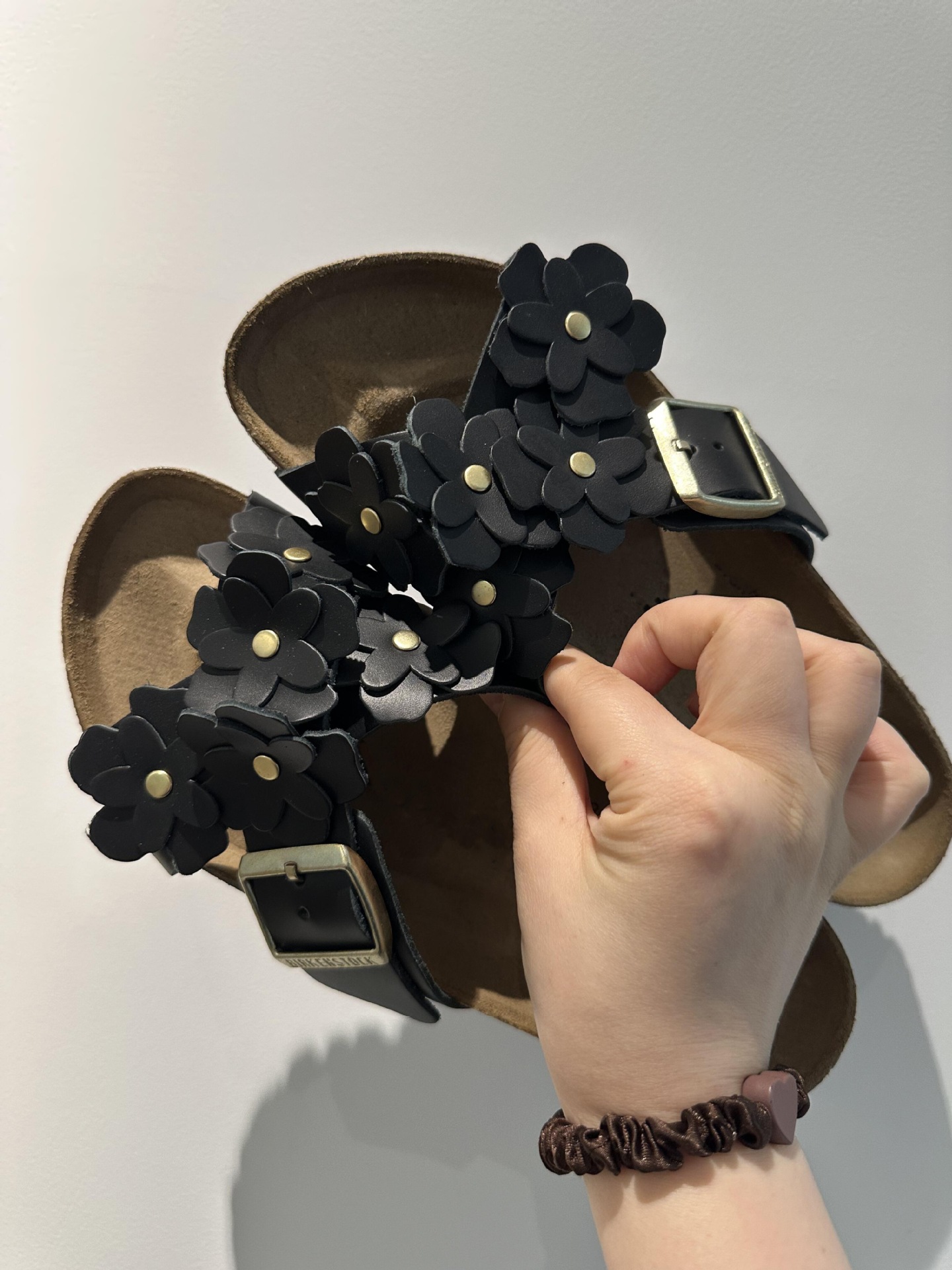 [재고 있음] 여름 아우터용 여성용 스위트 플라워 원라인 버클 오픈 토 슬리퍼 두꺼운 밑창 복고풍 높이 증가 버켄스탁 샌들