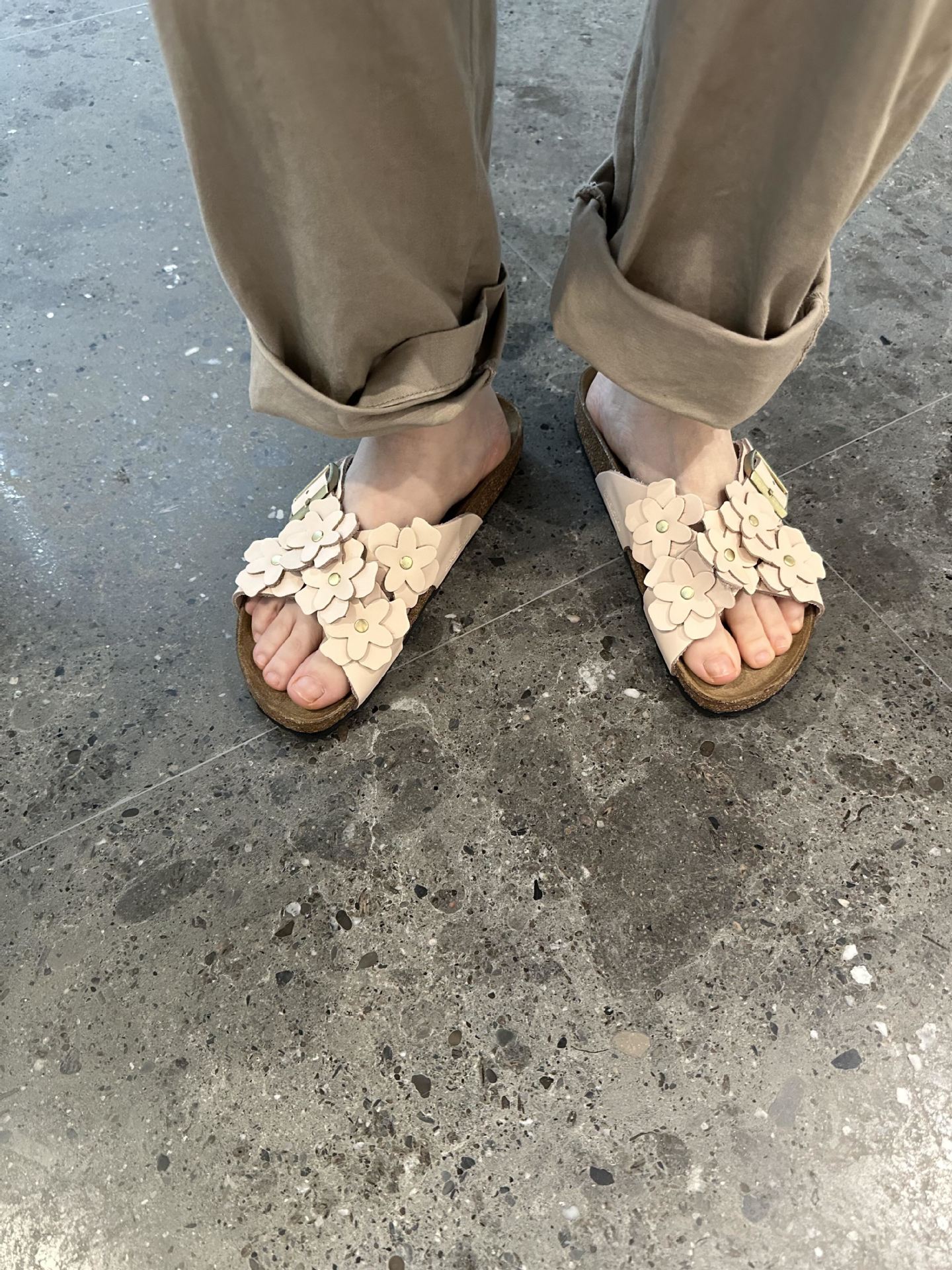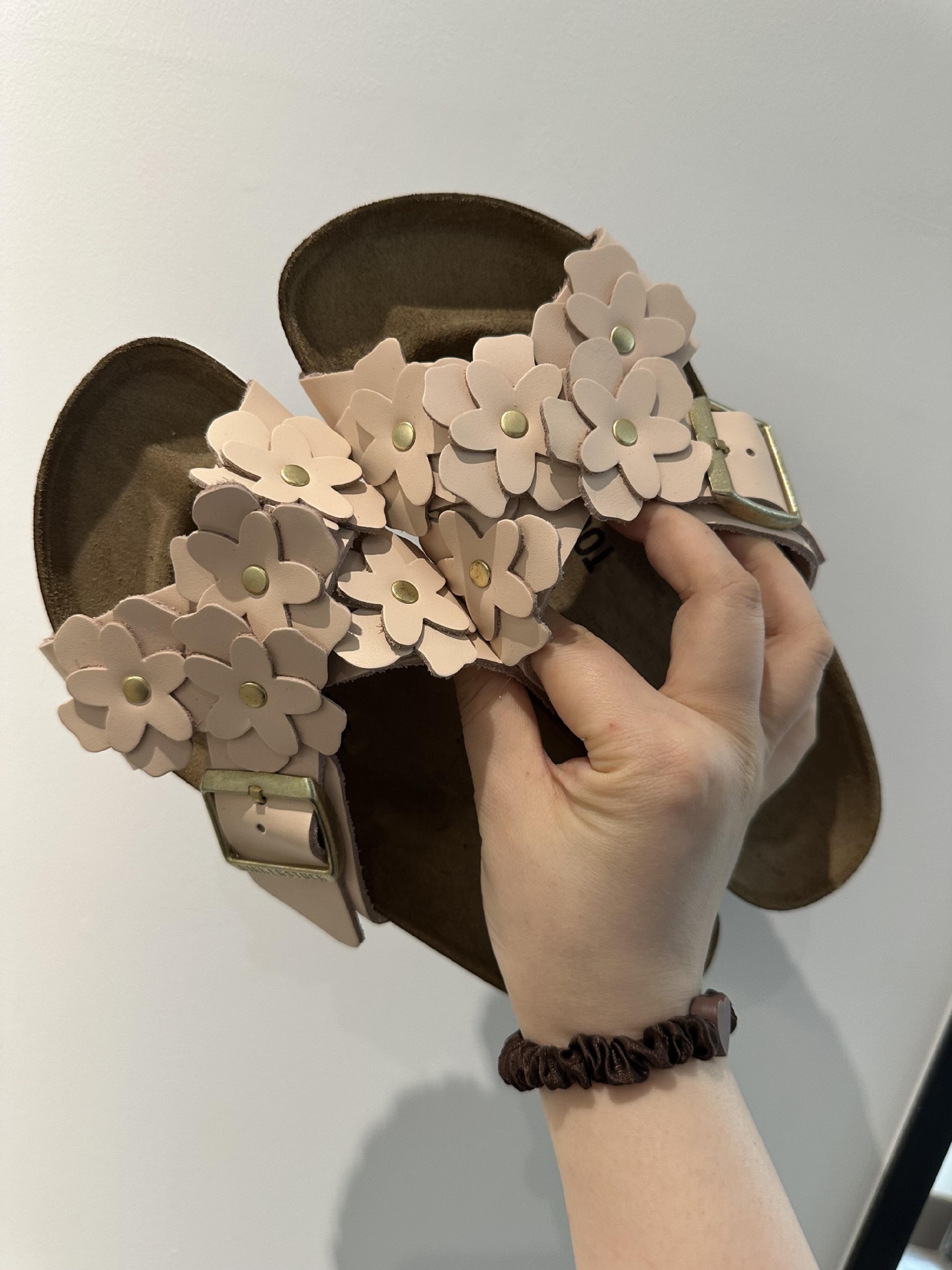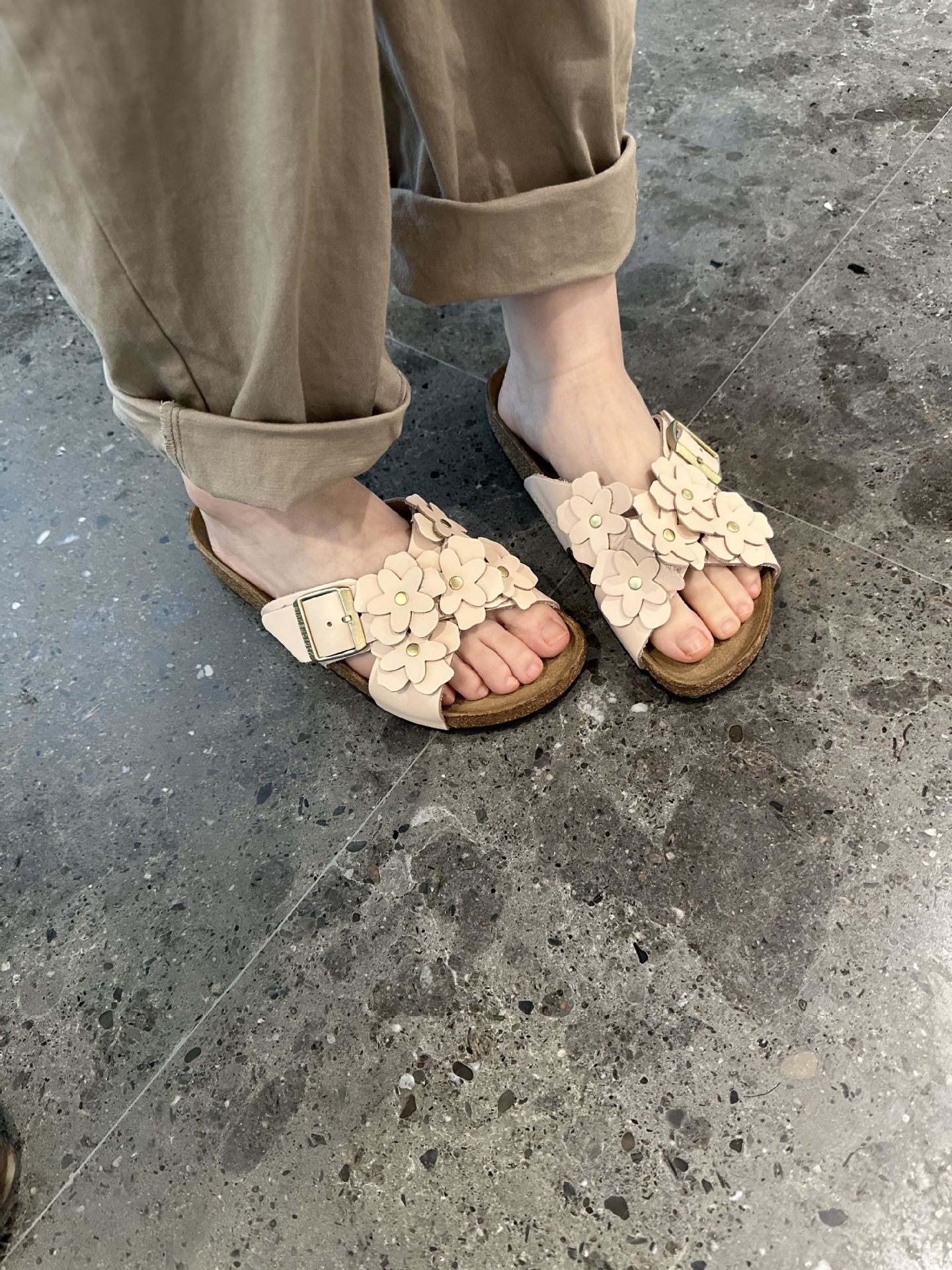 [재고 있음] 여름 아우터용 여성용 스위트 플라워 원라인 버클 오픈 토 슬리퍼 두꺼운 밑창 복고풍 높이 증가 버켄스탁 샌들스토어 가기