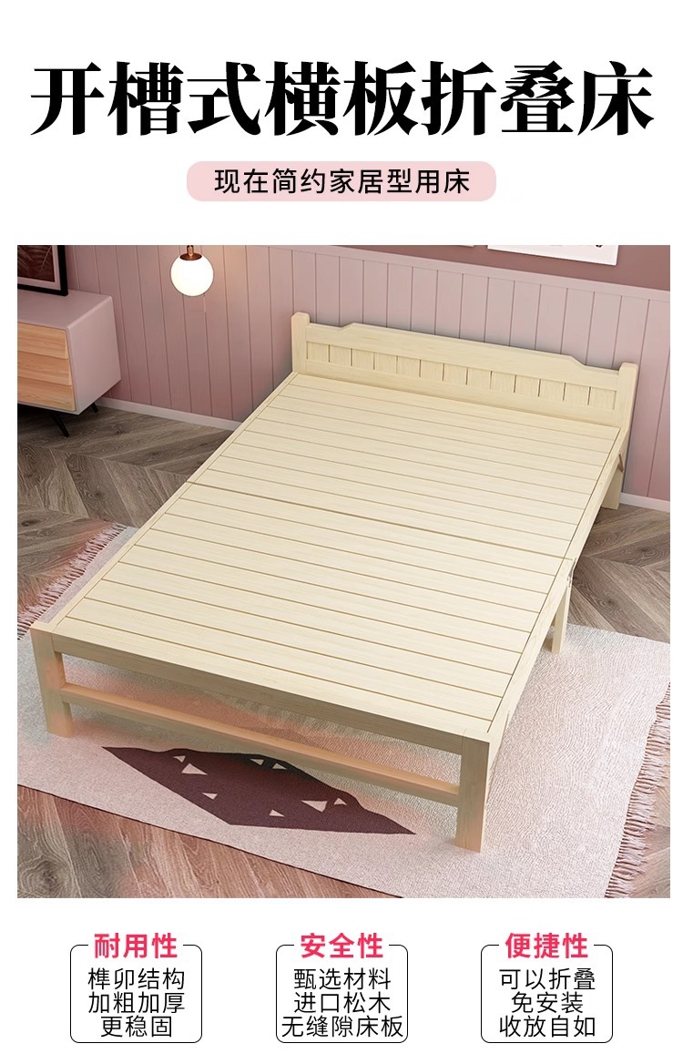 접이식 침대 단단한 나무 사무실 점심 시간 침대 건설 현장 잠자는 간단한 작은 침대 1m 가정용 성인 1.2m 싱글 침대스토어 가기