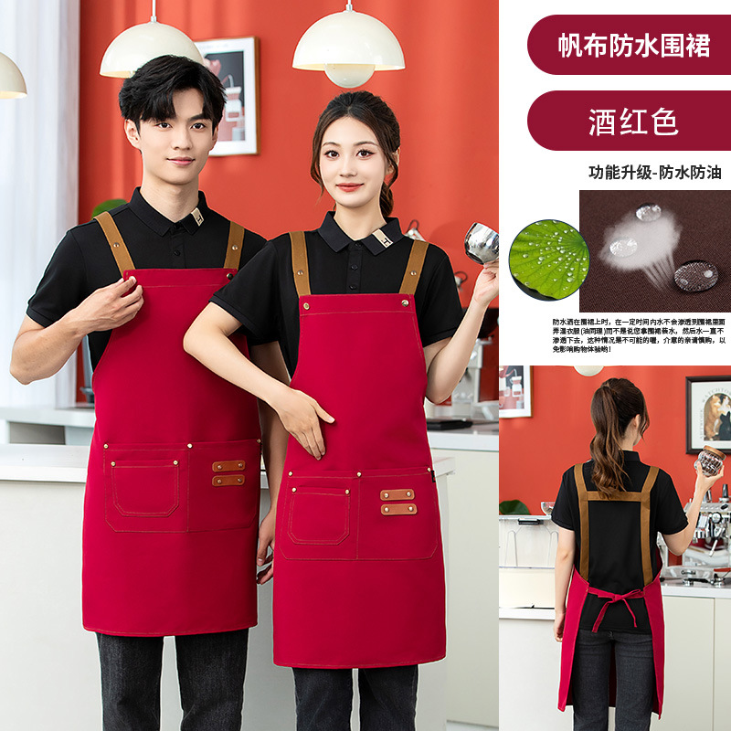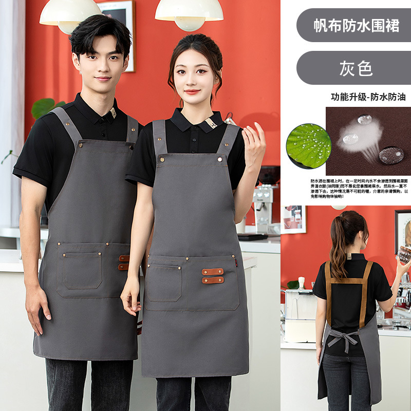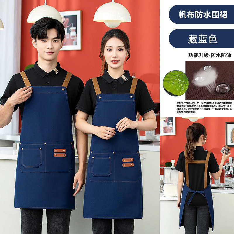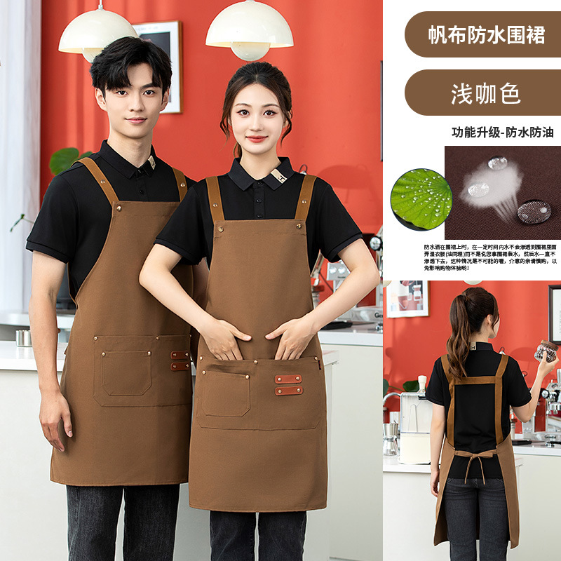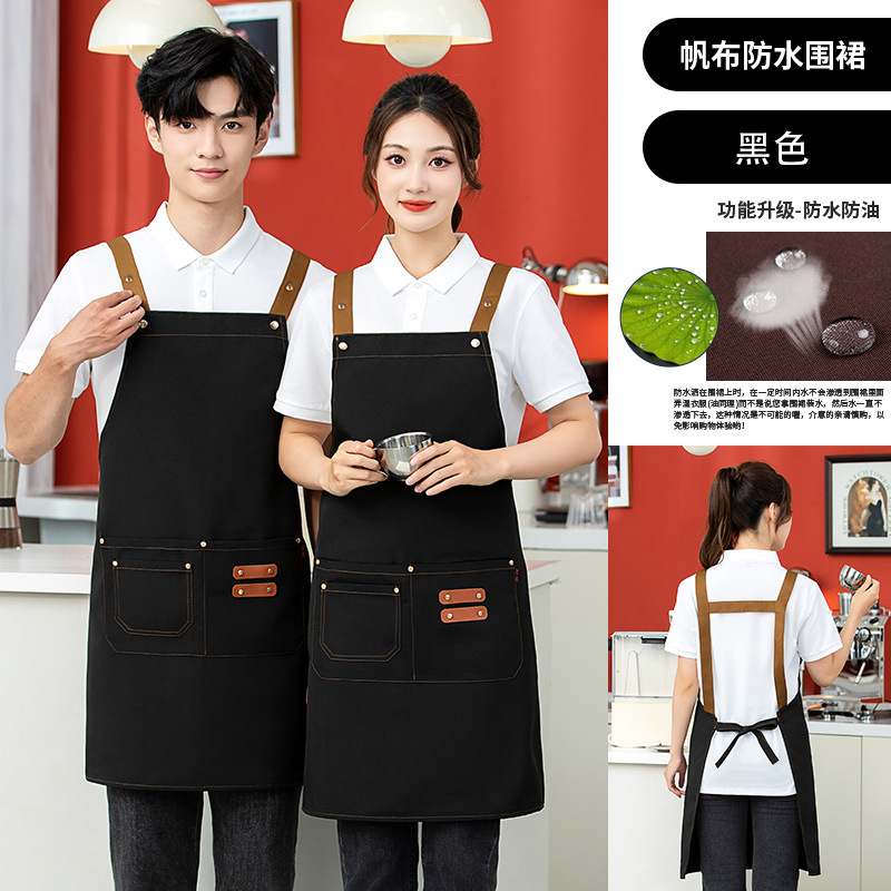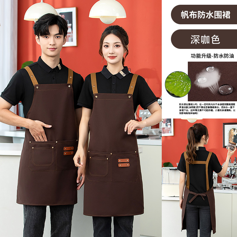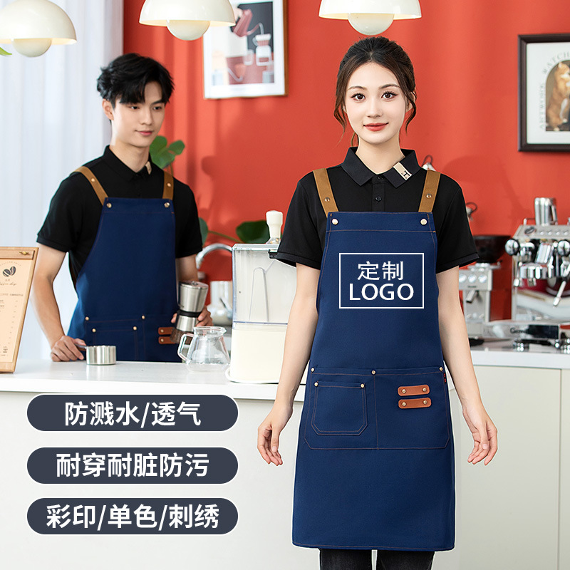 2025 새로운 앞치마 커피 숍 작업복 케이터링 일반 광고 앞치마 맞춤형 로고 캔버스 앞치마 방수스토어 가기