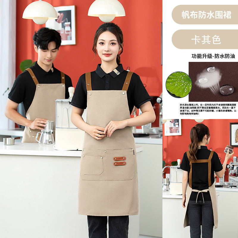 2025 새로운 앞치마 커피 숍 작업복 케이터링 일반 광고 앞치마 맞춤형 로고 캔버스 앞치마 방수