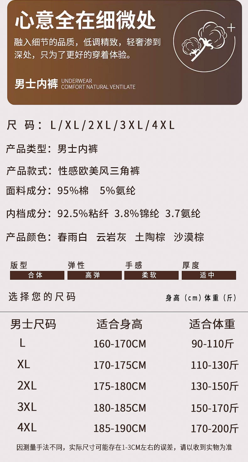 트렌디한 메일라드 컬러 남성 속옷, 면 팬티, 부드럽고 편안한 자카드 하이컷 미드 로우 웨이스트 남성 속옷