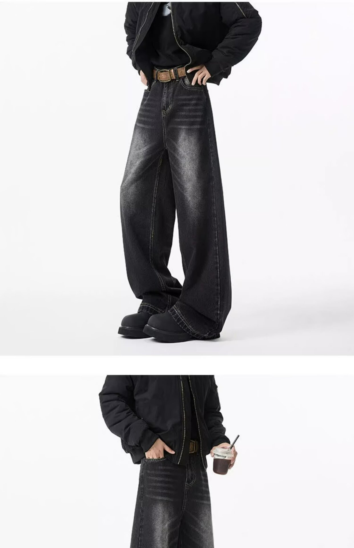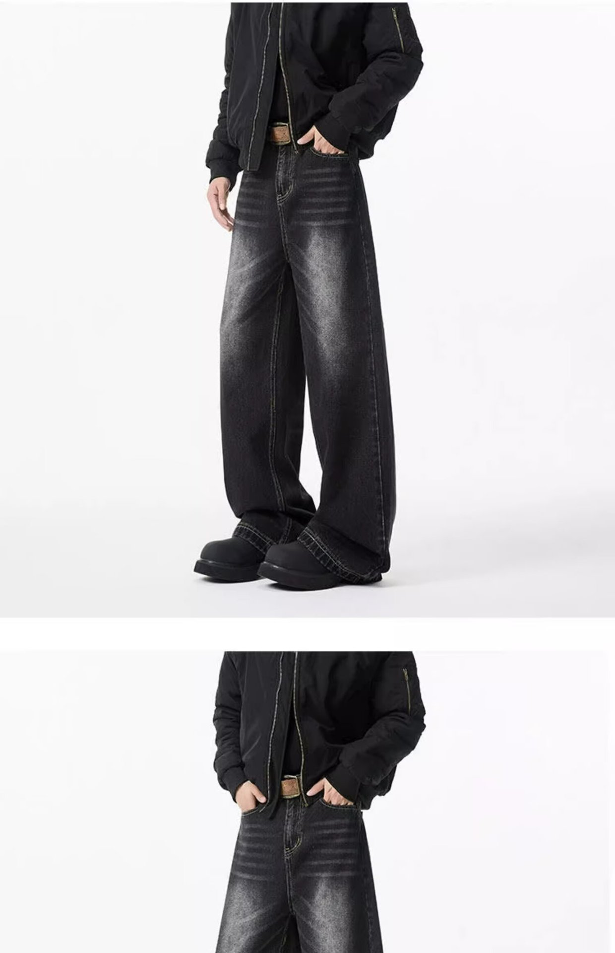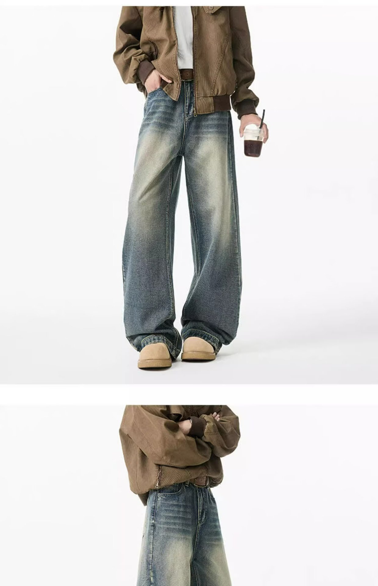 레트로 워싱 캣스터드 청바지 남성용 클린핏 팬츠 트렌디 브랜드 캐주얼 마이크로 플레어 팬츠 하이 스트리트 와이드 레그 세이버스토어 가기